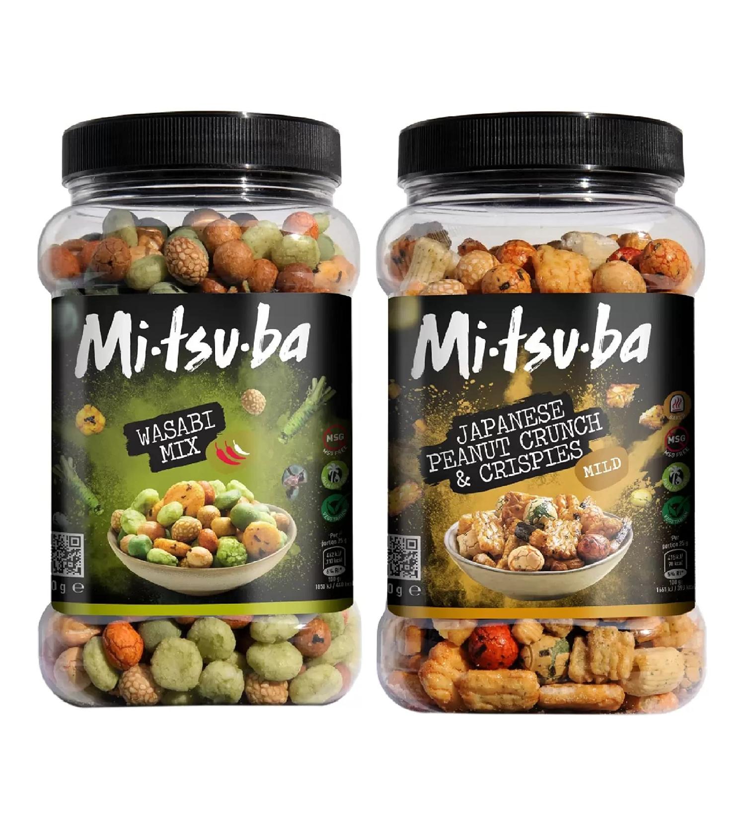 Party Food Snacks bulk buy - 1 x 800g Mitsuba Wasabi Mix & 650g Japanese Rice Crackers and Coated Peanuts Snack Kit wit a unique Topline Thank You Card. Rice crackers have been enjoyed across the Far East for generations, and are a good alternative to crisps and fried snacks. They are baked, not fried, flavoured with soy sauce, seaweed and chilli and best of all they taste great! Specially for the wasabi lover, crunchy mix of baked rice snacks and coated peanut crackers with a smashing herb mix of wasabi, seaweed and soy sauce. Mitsuba creates snacks with an amazing taste sensation. This crunchy mix of baked rice snacks and coated peanut crackers are made with a smashing mix of herbs, wasabi, seaweed and soy sauce. Mitsuba Japanese Peanut Crunch and Crispies is a crunchy mix of soy and seaweed flavoured rice snacks and coated peanuts. A mild Asian flavour with an intense crispness! Japanese rice crackers are a healthy snack alternative. They are low in calories, provide carbohydrates and have a small amount of protein. Rice crackers often come in flavors such as seaweed, sesame seeds, and seafood to provide additional health benefits. Mitsuba rice crackers are produced according to an authentic Japanese recipe. Made with rice, natural ingredients and deliciously light, our range of crunchy rice crackers are perfect for any snacking occasion: Birthday Party, Movie Night, BBQs What is the Japanese famous rice snack? Mitsuba is a very well-known Japanese snack consisting of rice crisps (senbei) with peanuts. This Japanese senbei or rice crackers is popular among children and also one of the best finger food that pairs well with beer.What is the Japanese famous rice snack? Mitsuba is a very well-known Japanese snack consisting of rice crisps (senbei) with peanuts. This Japanese senbei or rice crackers is popular among children and also one of the best finger food that pairs well with beer. Mitsuba rice crackers are produced according to an authentic Japanese recipe. Made with rice, natural ingredients and deliciously light, our range of crunchy rice crackers are perfect for any snacking occasion: Birthday Party, Movie Night, BBQs. Mitsuba Japanese Peanut Crunch and Crispies is a crunchy mix of soy and seaweed flavoured rice snacks and coated peanuts. A mild Asian flavour with an intense crispness! Japanese rice crackers are a healthy snack alternative. They are low in calories, provide carbohydrates and have a small amount of protein. Rice crackers often come in flavors such as seaweed, sesame seeds, and seafood to provide additional health benefits. Specially for the wasabi lover, crunchy mix of baked rice snacks and coated peanut crackers with a smashing herb mix of wasabi, seaweed and soy sauce. Mitsuba creates snacks with an amazing taste sensation. This crunchy mix of baked rice snacks and coated peanut crackers are made with a smashing mix of herbs, wasabi, seaweed and soy sauce. Party Food Snacks bulk buy - 1 x 800g Mitsuba Wasabi Mix & 650g Japanese Rice Crackers and Coated Peanuts Snack Kit wit a unique Topline Thank You Card. Rice crackers have been enjoyed across the Far East for generations, and are a good alternative to crisps and fried snacks. They are baked, not fried, flavoured with soy sauce, seaweed and chilli and best of all they taste great!.