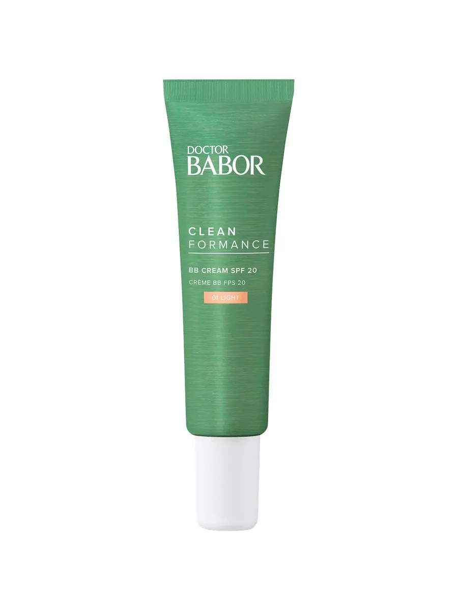 tinted BB cream for even skin tone. With a complex of pre- and probiotics and eco-friendly red maple bark extract. This product is the ideal solution for anyone looking for a lightweight alternative to foundation and for whom integrated skincare and an eco-friendly lifestyle are both important. The skin-friendly formula of this BB cream conceals uneven skin tone and texture, evens out skin tone, and restores radiance. Its medium coverage provides a natural, natural-looking effect. Pre- and probiotics restore the balance of the skin's microbiome and strengthen its protective barrier. Eco-friendly red maple bark extract helps prevent the first signs of aging thanks to its high antioxidant concentration. SPF 20 protects against the damaging effects of UV rays. Benefits: - The precision formula of DOCTOR BABOR CLEANFORMANCE BB Cream combines 97 naturally occurring ingredients with highly effective comprehensive care. - The silky texture with medium coverage adapts to the natural skin tone, applies evenly, without blemishes, and instantly conceals imperfections. - Thanks to the SPF 20 sun protection factor, the cream protects against the harmful effects of ultraviolet radiation. A complex of pre- and probiotics strengthens the skin's natural barrier. - Suitable for all skin types. The product is available in two shades. Directions: In the morning, after cleansing, apply to the skin of the face, neck, and, if necessary, décolleté. Lightly press or massage in. Ingredients: - PROBIOTICS Stimulate the growth of healthy microflora and suppress pathogenic bacteria, restore the balance of the skin microbiome and reduce its increased sensitivity. - RED MAPLE BARK EXTRACT Increases the density and elasticity of the skin, prevents the first signs of aging. Ingredients: Water (Aqua), Dicaprylyl Ether, Dicaprylyl Carbonate, Coco-Caprylate/Caprate, Titanium Dioxide, Titanium Dioxide (CI 77891)