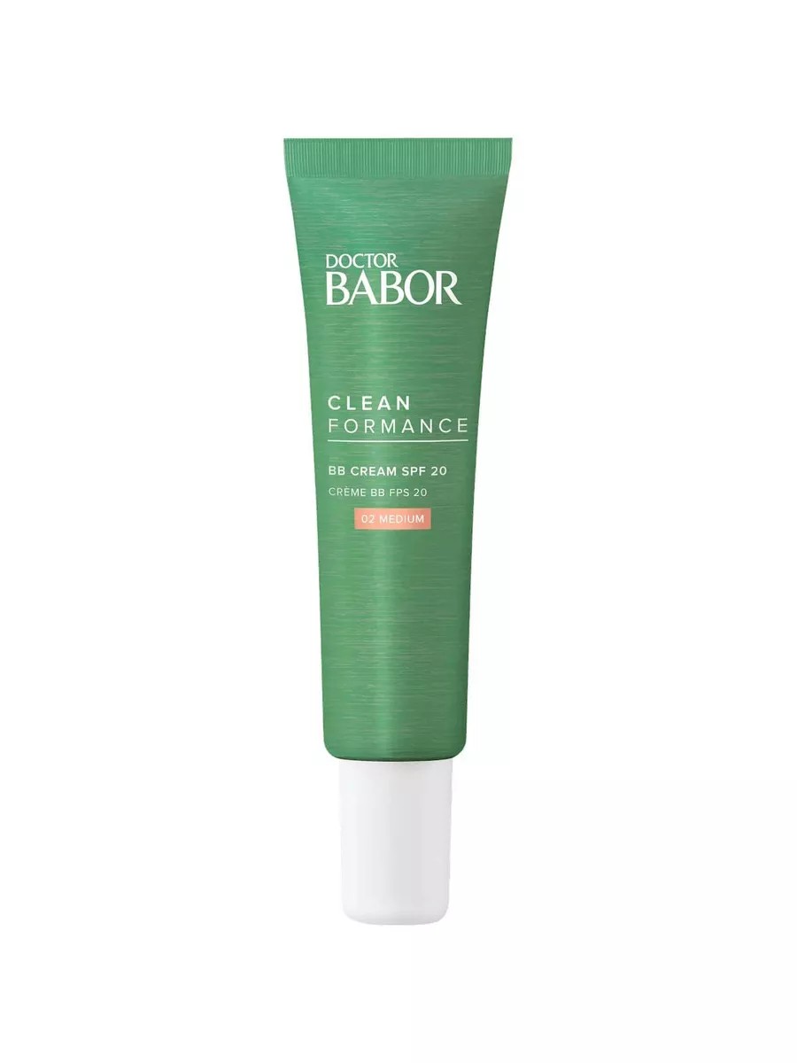 tinted BB cream for even skin tone. With a complex of pre- and probiotics and eco-friendly red maple bark extract. This product is the ideal solution for anyone looking for a lightweight alternative to foundation and for whom integrated skincare and an eco-friendly lifestyle are both important. The skin-friendly formula of this BB cream conceals uneven skin tone and texture, evens out skin tone, and restores radiance. Its medium coverage provides a natural, natural-looking effect. Pre- and probiotics restore the balance of the skin's microbiome and strengthen its protective barrier. Eco-friendly red maple bark extract helps prevent the first signs of aging thanks to its high antioxidant concentration. SPF 20 protects against the damaging effects of UV rays. Benefits: - The precision formula of DOCTOR BABOR CLEANFORMANCE BB Cream combines 97 naturally occurring ingredients with highly effective comprehensive care. - The silky texture with medium coverage adapts to the natural skin tone, applies evenly, without blemishes, and instantly conceals imperfections. - Thanks to the SPF 20 sun protection factor, the cream protects against the harmful effects of ultraviolet radiation. A complex of pre- and probiotics strengthens the skin's natural barrier. - Suitable for all skin types. The product is available in two shades. Directions: In the morning, after cleansing, apply to the skin of the face, neck, and, if necessary, décolleté. Lightly press or massage in. Ingredients: - PROBIOTICS Stimulate the growth of healthy microflora and suppress pathogenic bacteria, restore the balance of the skin microbiome and reduce its increased sensitivity. - RED MAPLE BARK EXTRACT Increases the density and elasticity of the skin, prevents the first signs of aging. Ingredients: Water (Aqua), Dicaprylyl Ether, Dicaprylyl Carbonate, Coco-Caprylate/Caprate, Titanium Dioxide, Titanium Dioxide (CI 77891)