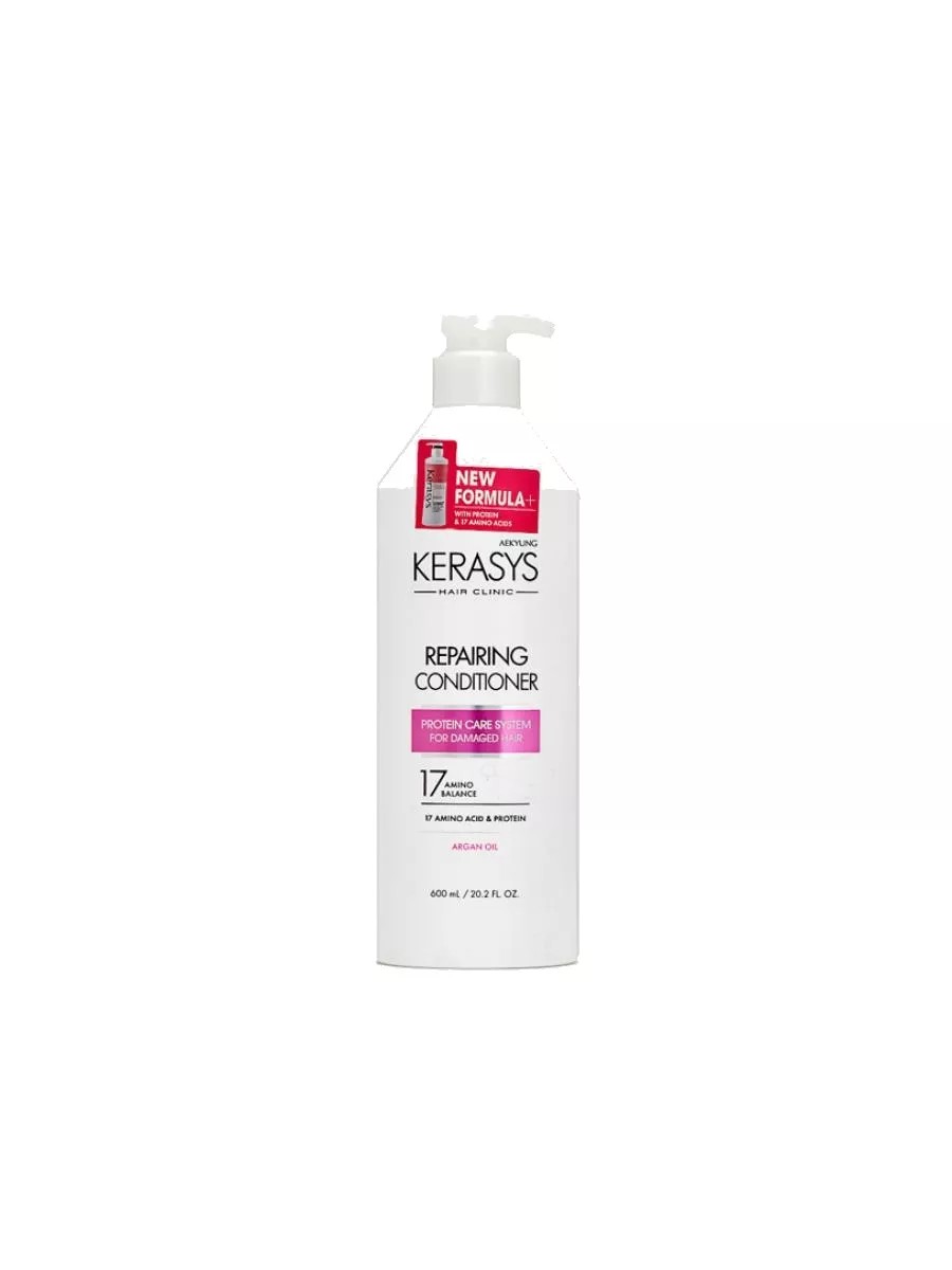 Kerasys Hair Clinic System Repairing Conditioner is designed for damaged hair caused by frequent chemical, heat, and sun exposure. This specially formulated formula for damaged hair with split ends restores the hair structure along its entire length, reducing split ends and breakage. Hair regains vitality, shine, and elasticity. Enriched with therapeutic liposomes that penetrate the hair's cellular structure and provide a restorative and healing effect.