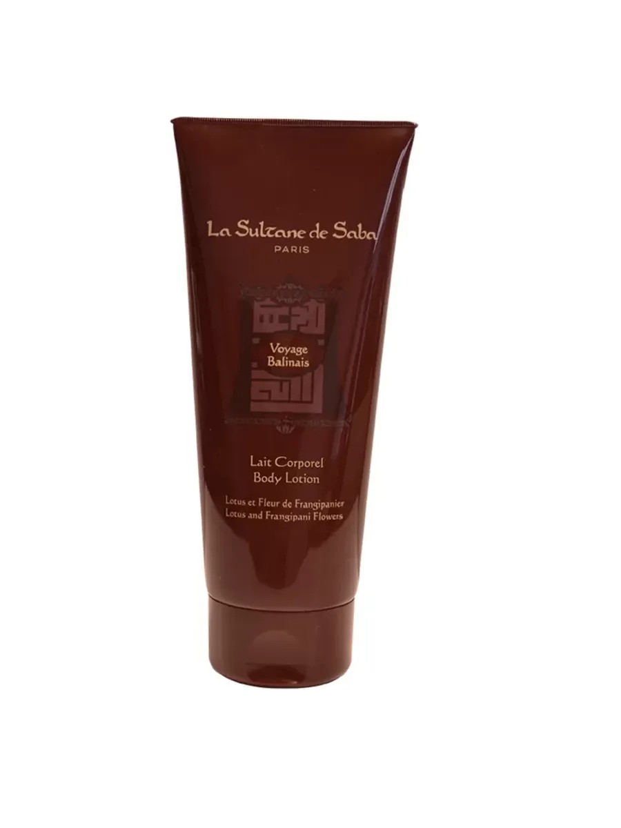 La Sultane de Saba Lait Corporel Fleurs De Lotus Et De Franzipani body milk, made with shea butter and sweet almond oil, has a fine and rich texture that provides long-lasting hydration and leaves a delicately scented veil on the skin.