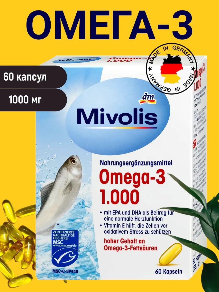 Omega-3 Mivolis is a high-quality fish oil in capsules containing 1000 mg of Omega-3 fatty acids.