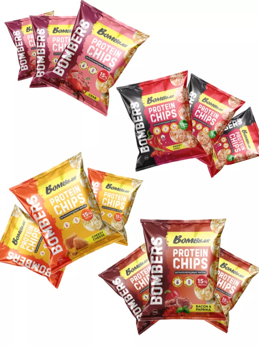 Наша линейка протеиновых чипсов BOMBBAR сочетает в себе превосходное качество и богатый ассортимент вкусов, чтобы каждый мог найти свой любимый. Это отличный перекус для тех, кто следит за фигурой, активно занимается спортом или просто хочет наслаждаться вкусными и полезными чипсами.