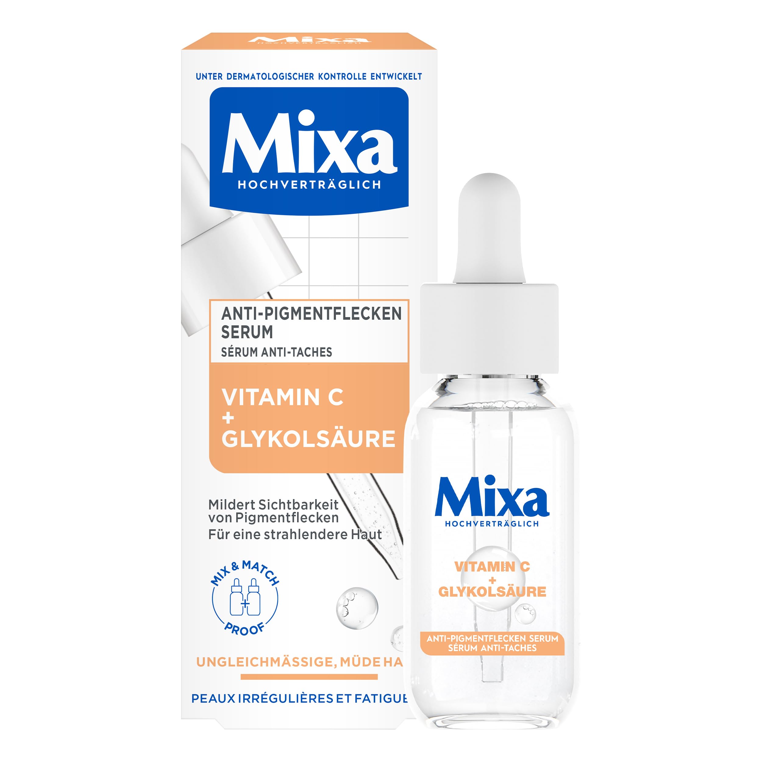 Mixa's Anti-Pigmentation Spot Serum is a facial skincare serum specifically designed to meet the needs of uneven and tired skin. Vitamin C and glycolic acid soften the appearance of dark spots while protecting against free radicals. Its exfoliating properties not only stimulate skin renewal but also promote a more even complexion. Furthermore, regular use creates a fresher, more radiant complexion. INGREDIENTS Aqua Water • Niacinamide • Glycerin • PEG PPG Polybutylene Glycol-8 5 3 Glycerin • Glycol Butylene • Ascorbyl Glucoside • Glycolic Acid • Methyl Gluceth-20 • Carbohydrate BOMER • SODIUM HYALURONATE • SODIUM HYDROXIDE • CAPRYLYL GLYCOL • TETRASODIUM GLUTAMATE DIACETATE • BIOSACCHARIDE GUM-1 • MALTODEXTRIN • POLYSORBATE 20 • SALICYLIC ACID • PERFUME FRAGRANCE INSTRUCTIONS FOR USE First, thoroughly cleanse your face, removing dirt, makeup residue, and excess oil. Then, using the dropper, apply a few drops of the anti-pigmentation serum to dry facial skin and gently massage in. Due to the serum's exfoliating effect, it is recommended to use a face cream with SPF to protect sensitive facial skin from sunburn. For example, a dark spot corrector cream with SPF 20 can be applied as the final step in your daily skincare routine. SAFETY WARNING To verify the composition of a particular product, always consult the ingredient list on the product packaging. See morePackage contents: Mixa anti-pigmentation serum for uneven, dull, and sensitive skin, suitable for face and neck, SPF 20, hypoallergenic, 30 ml. Protective pump packaging: protects against contact with air for better preservation of the formula on sensitive skin. Ingredients: complementary duo of active ingredients, vitamin C and niacinamide, for skin radiance and to reduce dark spots hypoallergenic and alcohol-free formula. Use: on the face and neck after cleansing and before applying moisturizer. In case of prolonged exposure to intense sun, use sunscreen. Effect: instantly reduces the appearance of dark spots after 4 weeks provides 48-hour hydration.Mixa Sérum anti-taches pigmentaires pour peaux irrégulières, ternes et sensibles avec vitamine C et niacinamide, convient pour le visage et le cou, SPF 20, hypoallergénique, 30 mlDESCRIPTION DU PRODUIT DESCRIPTION DU PRODUIT Le sérum anti-taches pigmentaires de Mixa est un sérum de soin du visage spécialement conçu pour répondre aux besoins des peaux inégales et fatiguées. Les ingrédients vitamine C et glycolique adoucissent la visibilité des taches pigmentaires tout en protégeant contre les radicaux libres. Ses propriétés exfoliantes stimulent non seulement le renouvellement de la peau, mais favorisent en même temps un teint plus uniforme. En outre, une utilisation régulière crée un teint plus frais et éclatant. INGRÉDIENTS Aqua Water• NIACINAMIDE • GLYCERINE • PEG PPG POLYBUTYLENE GLYCOL-8 5 3 GLYCERINE • GLYCOL BUTYLENE • ASCORBYL GLUCOSIDE • ACIDE GLYCOLIQUE • METHYL GLUCETH-2 0 • Car. BOMER • HYALURONATE DE SODIUM • HYDROXIDE DE SODIUM • CAPRYLYL GLYCOL • TETRASODIUM GLUTAMATE DIACETATE • BIOSACCHARIDE GUM-1 • MALTODEXTRINE • POLYSORBATE 20 • ACIDE SALICYLIQUE • PARFONCTION UM FRAGRGR. ANCE MODE D'EMPLOI Tout d'abord, nettoyez soigneusement le visage et débarrassez-vous de la saleté, des résidus de maquillage et de l'excès de sébum. Appliquez ensuite quelques gouttes de sérum anti-taches pigmentaires sur la peau sèche du visage à l'aide de la pipette et travaillez doucement. En raison de l'effet exfoliant du sérum, il est recommandé d'utiliser une crème pour la peau avec un facteur de protection solaire pour protéger la peau sensible du visage des coups de soleil. Ainsi, par exemple, la crème anti-taches pigmentaires avec indice de protection solaire 20 peut être appliquée comme conclusion de la routine quotidienne de soins de la peau. AVERTISSEMENT DE SÉCURITÉ Pour vérifier la composition d'un produit particulier, il est toujours nécessaire de consulter la liste des ingrédients figurant sur le produit. Voir plusContenu de l'emballage : sérum anti-taches pigmentaires Mixa pour peaux irrégulières, ternes et sensibles, convient pour le visage et le cou, SPF 20, hypoallergénique, 30 ml. Emballage protecteur de la pompe : protection contre le contact avec l'air pour une meilleure conservation de la formule sur les peaux sensibles. Ingrédients : duo complémentaire d'actifs, vitamine C et niacinamide pour l'éclat de la peau et réduire les taches brunes, formule hypoallergénique et sans alcool. Utilisation : sur le visage et le cou après le nettoyage et avant la crème, en cas d'exposition prolongée à une exposition intense au soleil, utilisez un écran solaire. Effet : réduit instantanément l'apparition de taches brunes après 4 semaines, hydratation pendant 48 heures.