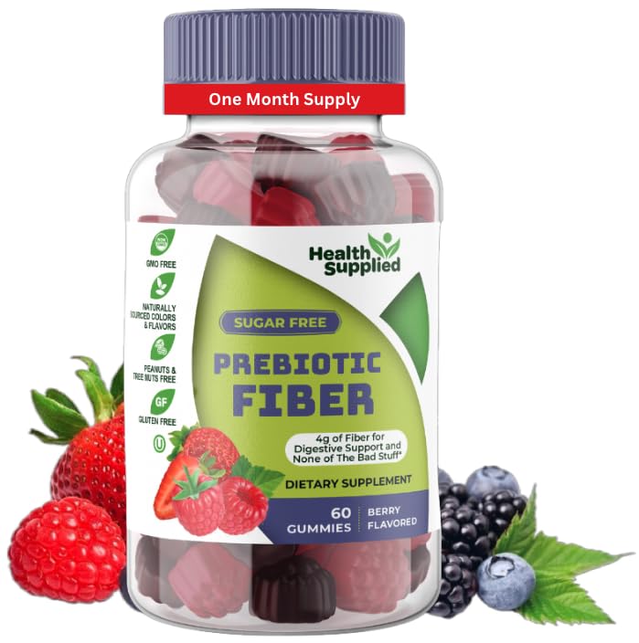NATURALLY FLAVORED AND VEGETARIAN: These vegetarian prebiotic fiber gummies are certified non-GMO, gluten-free, and dairy-free. They are free of peanuts and tree nuts and they are made with natural pectin. Kosher and halal. HELPS SUPPORT DIGESTIVE SYSTEM: One of the best Sugar Free Prebiotic Fiber Vitamins, these vitamins may help clean the gut while supporting the growth of good bacteria that can help support regularity. SUGAR FREE AND KETO FRIENDLY: These Prebiotic Fiber gummies are completely sugar free. Yet we manage to maintain our great taste without any sugar. For those who are on a keto diet, prefer a healthier alternative, or are diabetic, You gotta try it to believe it!. GREAT TASTING BERRY FLAVORED GUMMIES: These Sugar Free Prebiotic Fiber gummies have a fruity berry flavor everyone loves they are enjoyable and easy to chew and swallow. 60 GUMMIES 1 MONTH SUPPLY - Made with Naturally sourced Fiber with Prebiotic properties - Based on serving size, Serving size is 2 gummies a day.