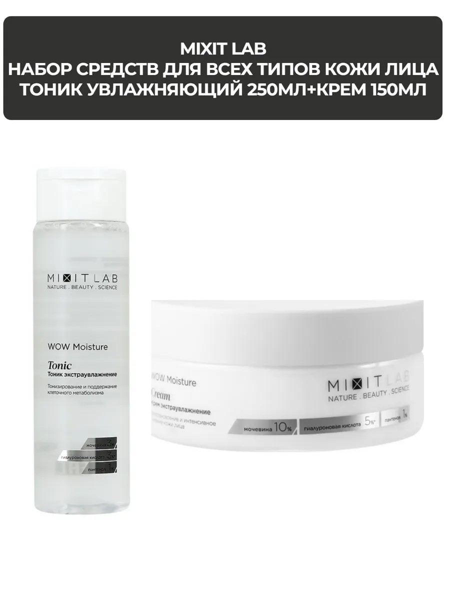 | Комплектация | MIXIT LAB Тоник экстра увлажнение для всех типов кожи 250 мл; MIXIT Lab WOW Крем экстра увлажнение для всех типов кожи 150 мл |