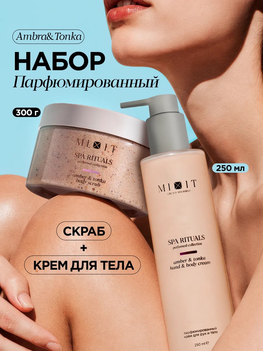 МИКСИТ Женский подарочный набор для тела Spa Rituals Amber & Tonka – идеальное средство, которое создает ауру, которая превращает уход за кожей тела, рук и ног в изысканный ритуал! В него входит антицеллюлитный сахарный скраб для тела с маслами кокоса и ши Body Scrub, парфюмированный увлажняющий крем для рук и тела. Отличный подарок на 8 марта подруге, любимой, маме, коллегам, женщинам, девочке или учителю. Чувственный аромат амбры и бобов тонка наполняет энергией и силой.