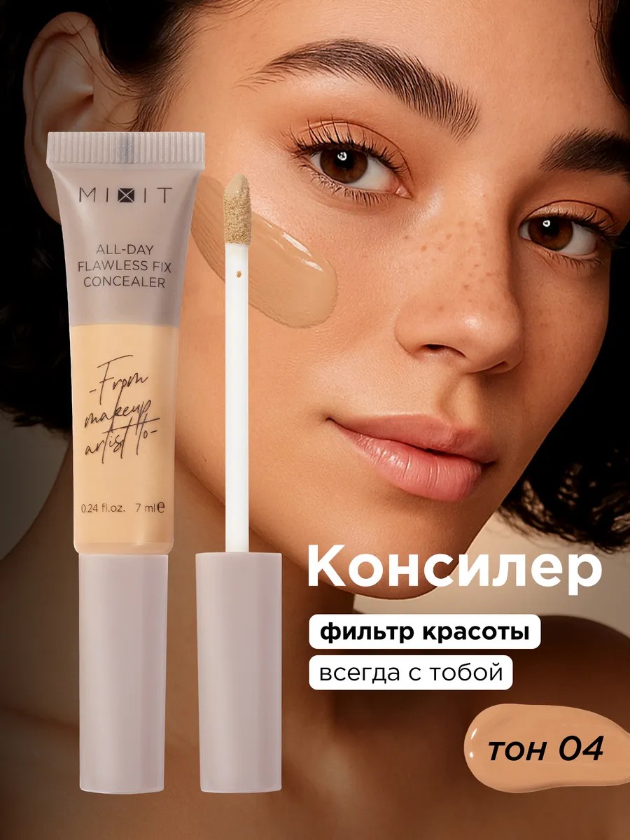 МИКСИТ Make Up All-Day Flawless Fix Concealer – самый стойкий консилер для кожи вокруг глаз и век с безупречной фиксацией на весь день, оттенок 4. Представляем вам консилер, который станет незаменимым помощником в создании идеального макияжа. Этот профессиональный косметический продукт разработан для коррекции несовершенств вашего лица. Он легко наносится и отлично смешивается с тональным кремом, создавая естественный и ровный цвет кожи.