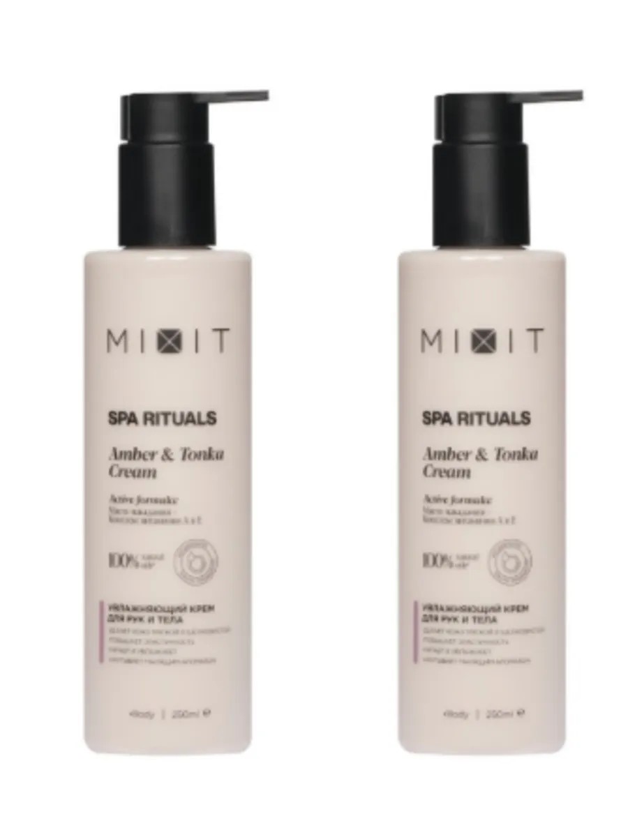 Mixit, Крем для рук и тела с ароматом амбры и бобов тонка SPA Rituals Amber & Tonka Cream 250 мл., комплект из 2 шт. Увлажняющий крем для рук и тела создает эффект домашнего спа и нежно ухаживает. Благодаря активным компонентам в составе оно моментально делает кожу шелковистой, питает и увлажняет, окутывая манящими нотками амбры и бобов тонка. Соприкасаясь с телом, аромат становится притягательным и индивидуальным. Оставляет за собой долгий и мягкий шлейф. Масла ши и макадамии и комплекс витаминов уменьшают шелушение и покраснение кожи, бережно восстанавливают и способствуют регенерации.