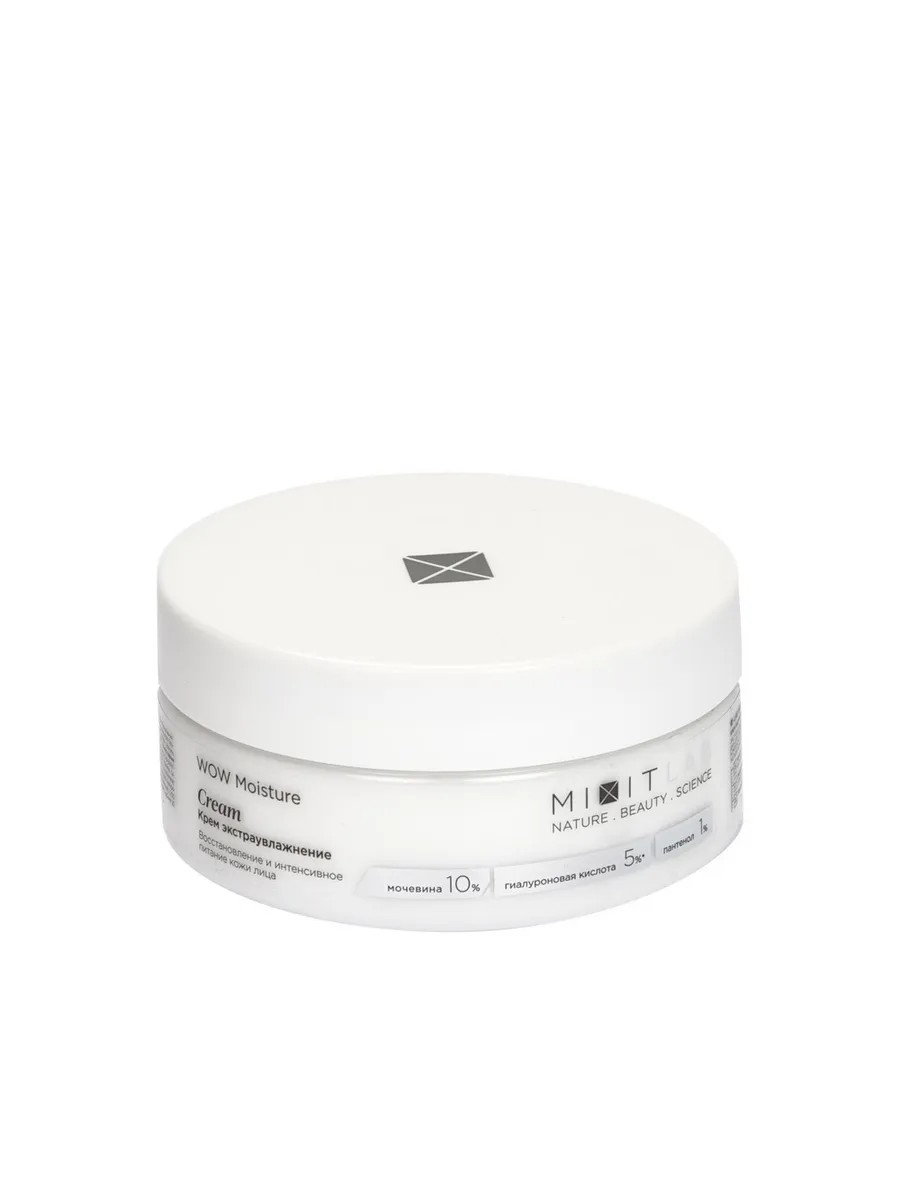 Mixit Lab WOW Крем экстраувлажнение с мочевиной и гиалуроновой кислотой для всех типов кожи 150 мл. Экстраувлажняющий крем для лица с гиалуроновой кислотой, мочевиной 10% и пантенолом создан для ежедневного ухода за обезвоженной кожей лица. Активные компоненты работают в синергии, усиливают действие друг друга и делают кожу сияющей изнутри. Глубоко увлажняют, устраняют ощущение стянутости и способствуют разглаживанию мелких морщинок. Крем мгновенно улучшает внешний вид и состояние кожи.