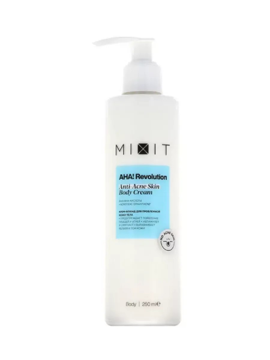 Крем-флюид для проблемной кожи тела с легкой текстурой не забивает поры, мгновенно питает и увлажняет кожу, снимает воспаления и препятствует появлению прыщей и угрей на теле. Формула с комплексом SymAntiAcne+, AHA- и BHA-кислотами нормализует работу сальных желез, уменьшает видимость следов постакне, удерживает влагу в клетках и борется с несовершенствами. Интенсивно смягчает, выравнивает рельеф и тон кожи.