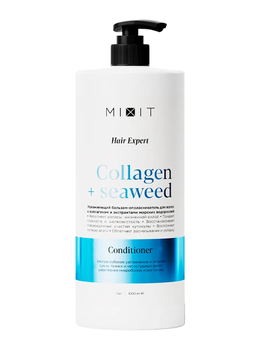 | Полное наименование товара | Увлажняющий бальзам для волос с коллагеном и экстрактами морских водорослей MIXIT Hair Expert Collagen and Seaweed Conditioner 1000 мл |