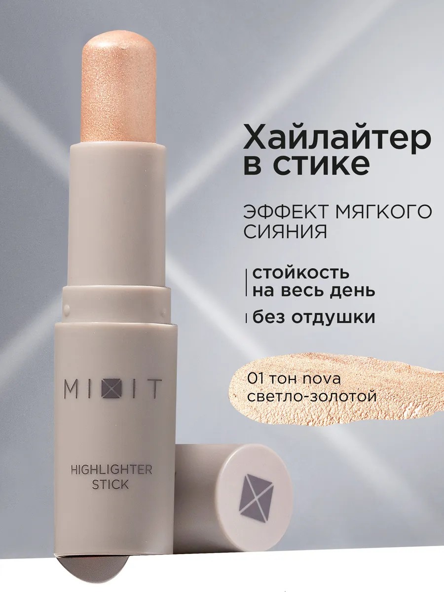 МИКСИТ Make Up Highlighter Stick – золотой мерцающий хайлайтер для лица в карандаше, тон 1. Кремовый хайлайтер в стике – идеальный помощник для создания безупречного макияжа. Этот универсальный продукт легко наносится и подходит для любого типа кожи. Формула включает свет отражающие частицы, которые придают коже нежный блеск и здоровое сияние. Вы можете использовать его как скульптор для контуринга или как хайлайтер карандаш для добавления акцентов на декольте, лицо, нос, щеки и другие зоны.