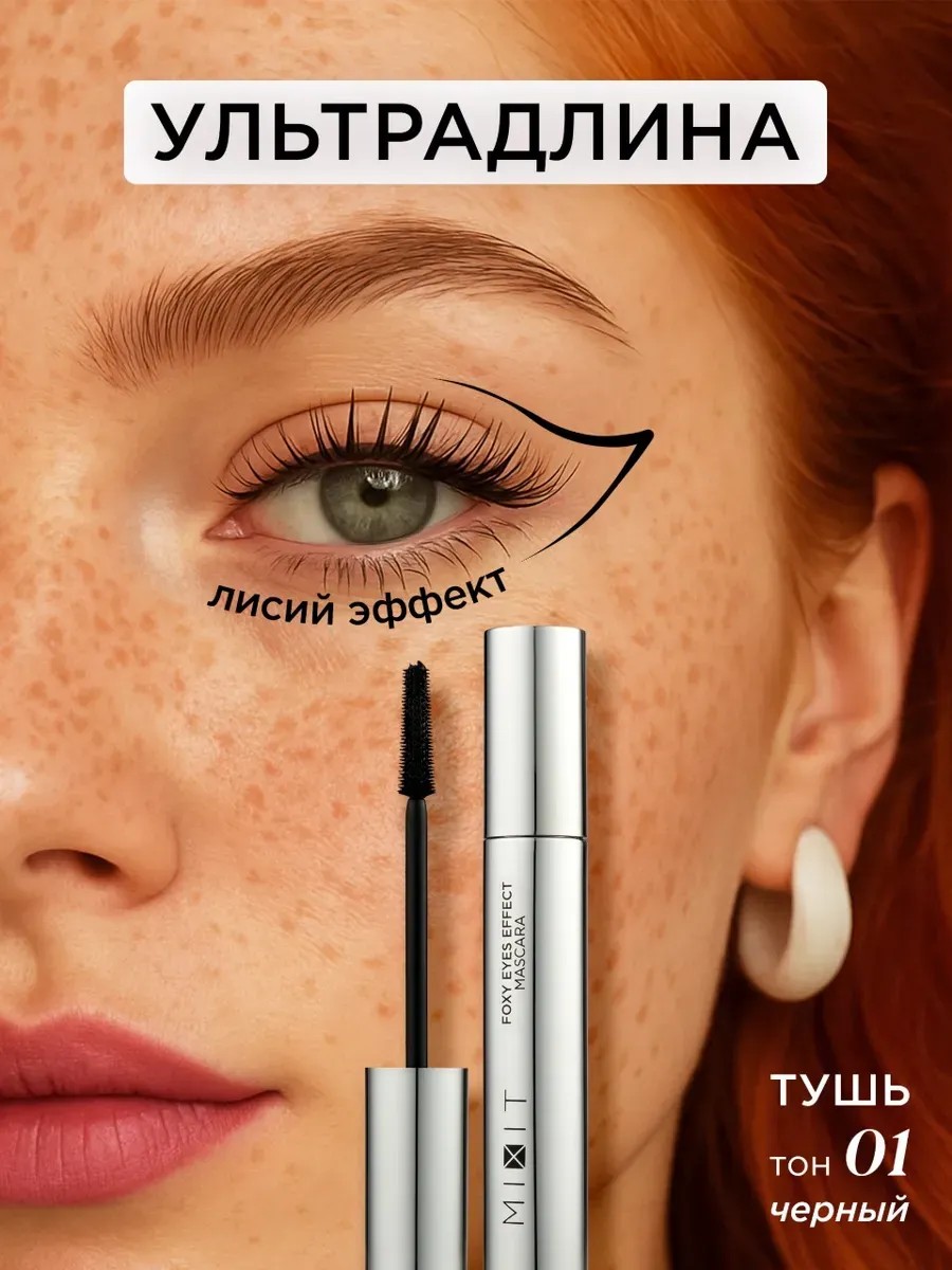 МИКСИТ Профессиональная чёрная тушь для ресниц с тонкой щеточкой Make Up Premium Foxy Eyes Effect Откройте для себя декоративную косметику нового уровня с уникальной тушью, созданной для удлинения и придания выразительного объема вашим ресницам. Находка для тех, кто хочет подчеркнуть красоту глаз и добиться профессионального результата в макияже. Черный насыщенный пигмент обеспечивает глубокий цвет, идеально подходящий как для дневного, так и вечернего образа.