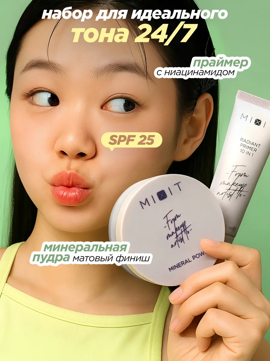 Преобразите свою кожу и откройте секрет безупречного макияжа с набором минеральной пудры и праймера для сияния 10 в 1 от MIXIT! Этот волшебный дуэт станет вашим верным помощником в создании идеального ровного матового тона, словно эффект фотошопа в реальной жизни.