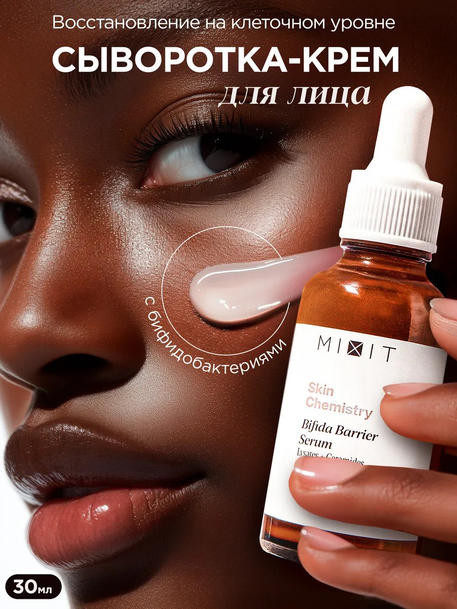 MIXIT Идеальная уходовая косметика - сыворотка Миксит для ухода за кожей лица. Увлажняющее средство от прыщей для подростков на основе бифидобактерий. Обеспечивает глубокое увлажнение, устраняя сухость и шелушения. Питательная формула помогает восстановить тонус кожи и улучшить ее текстуру. Эта сыворотка подходит как женщинам, так и мужчинам. Она эффективно борется с проблемами, связанными с прыщами и воспалениями, от морщин под глазами. Средство оказывает успокаивающее действие на чувствительную кожу, снижая покраснения и раздражения. Восстанавливающая формула помогает в борьбе с постакне, выравнивая поверхность кожи. Использование средства способствует уменьшению следов от прыщей (для взрослой кожи). Ночная и дневная сыворотка дарит эффект омоложения, улучшая сияние кожи. Натуральные компоненты против морщин придают коже здоровый вид. Косметика с ниацинамидом известна антивозрастными свойствами. Она поддерживает здоровье кожи и способствует равномерному тону лица. Это идеальное средство для женщин всех возрастов (для возрастной кожи и вокруг глаз). Сыворотка с лактобактериями также подойдет от прыщей для девочек, мальчиков подростков, имеющим проблемы с акне и жирной кожей. Работает без утяжеления как база (праймер) под макияжа (косметика женская для макияжа). Профессиональный уход включает компоненты. Эти свойства делают serum отличным подарком для девушек или мам. Увлажнение – ключевой момент в ежедневном уходе за кожей, как и выравнивание тона кожи. Сыворотка помогает сохранить баланс влаги даже в условиях сухого воздуха или при частом использовании косметики. Микс из активных веществ помогает достичь эффекта сияющей кожи без следов усталости или стресса, преображая и даря красоту. Подходит для комбинированно, сухой, проблемной кожи. Качественная брендовая косметика. серум - идеальный подарок на день рождения, для мамы, подруги, девушки, парня, любимой, любимого, коллеги, сестры.