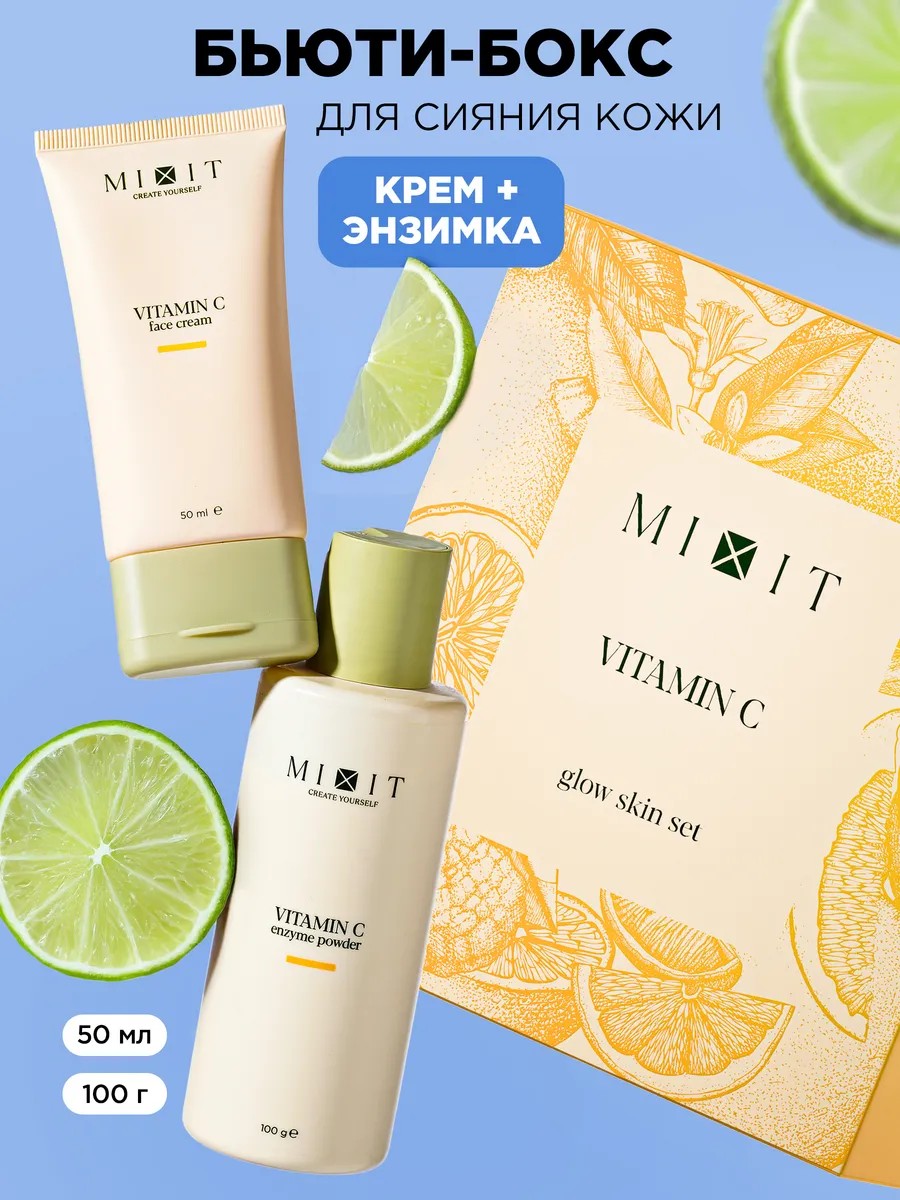 MIXIT Увлажняющий крем для лица с витамином С и энзимная пудра для умывания — идеальное решение для ухода за кожей. Этот набор помогает восстановить естественное сияние кожи, обеспечивая глубокое увлажнение и мягкое очищение.