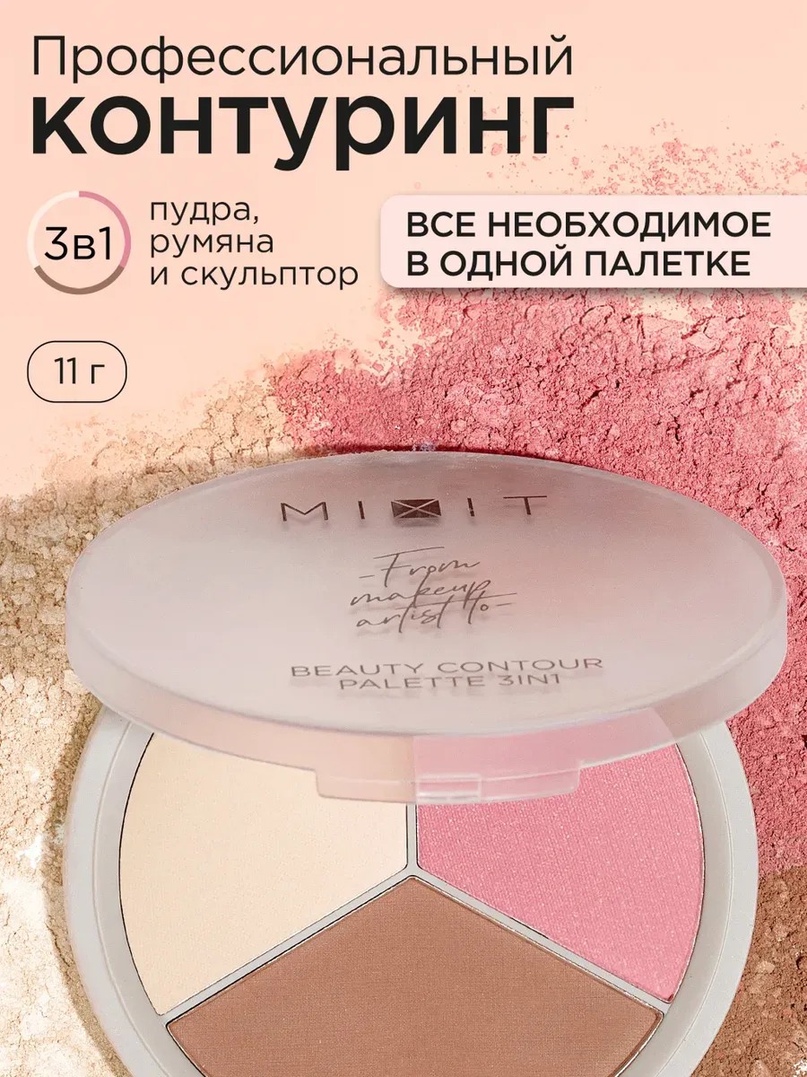 МИКСИТ Make Up Beauty Contour Palette 3 in 1, тон 01 - универсальная и большая трехцветная компактная палетка для скульптурирования - база безупречного макияжа.