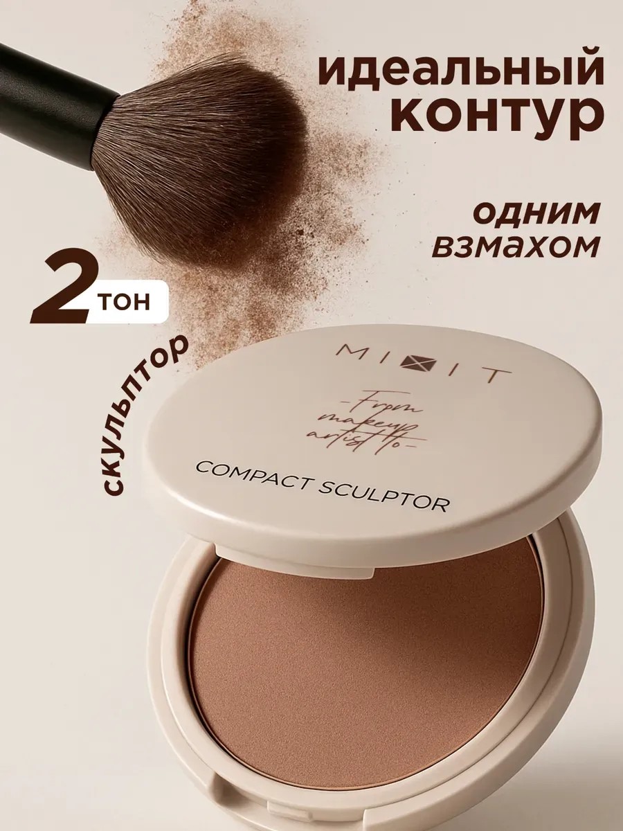 МИКСИТ Компактный скульптор c шелковистой матовой текстурой Make Up Сompact Sculptor идеально подходит для моделирования овала лица. Оттенок color 02 Chestnut – светлый холодный коричневый. Скульптор для создания безупречного макияжа станет незаменимым элементом в вашей косметичке. Этот сухой продукт подходит для моделирования и контуринга, позволяя скорректировать форму лица, подчеркнуть скулы и создать профессиональный эффект скульптурирования. Благодаря своей текстуре, средство легко растушевывается, обеспечивая натуральный результат.
