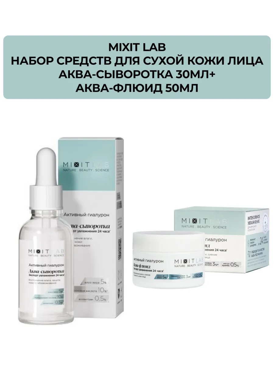 | Комплектация | MIXIT LAB Аква-сыворотка увлажняющая для сухой кожи с алоэ и гиалуроновой кислотой 30 мл; MIXIT LAB Увлажняющий аква-флюид с алоэ и гиалуроновой кислотой для сухой кожи 50 мл |