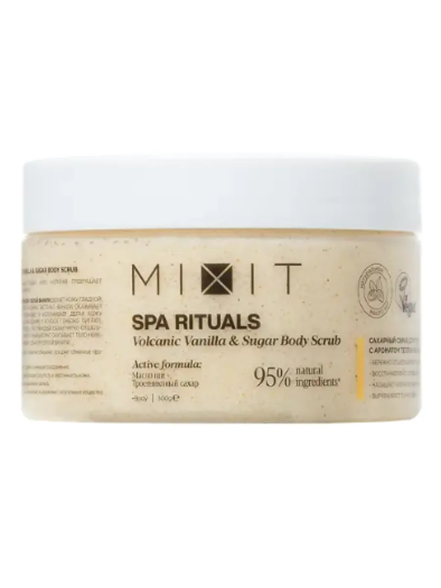 Mixit, Сахарный скраб для тела с ароматом теплой ванили Spa Rituals Volcanic Vanilla & Sugar Body Scrub 300 г., 1 шт. Сахарный скраб для тела оказывает омолаживающее действие, разглаживает и успокаивает кожу. Активные компоненты усиливают действие друг друга для бережного отшелушивания и глубокого питания. В результате кожа становится гладкой, мягкой и упругой, а тело окутывается нежным облаком ванили.