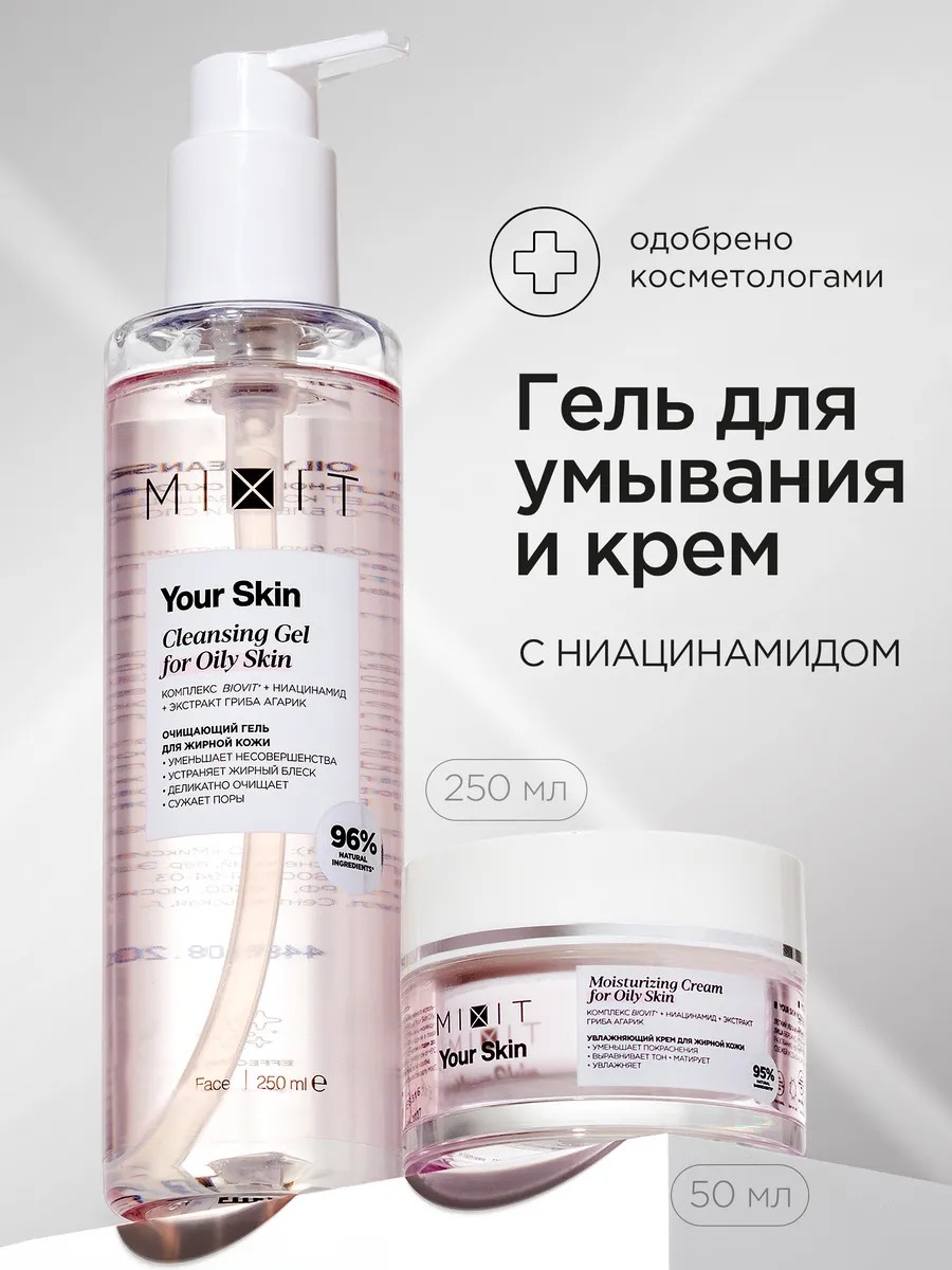МИКСИТ Уходовая косметика - гель умывалка для лица с ниацинамидом, очищающий и увлажняющий Mixit, идеально подходит для ухода за кожей. Умывашка содержит гиалуроновую кислоту, которая активно увлажняет и помогает выровнять текстуру кожи, придавая ей здоровое сияние. Этот флюид глубоко очищает, обеспечивая мягкое отшелушивание и избавление от шелушений. Средство подходит как для комбинированной, так и для чувствительной кожи. Салициловая кислота в составе борется с проблемными участками, уменьшает воспаления и предотвращает появление высыпаний. Оно также помогает сужать поры и регулирует себорегуляцию, что делает его идеальным выбором для подростков и девушек, девочек с жирной или комбинированной кожей. Матирующий ламеллярный крем от прыщей обладает легкой текстурой, быстро впитывается и обеспечивает длительное увлажнение. Пептиды в составе способствуют регенерации клеток кожи, улучшая упругость и уменьшая видимость морщин. Успокаивающие компоненты помогают снять раздражение и покраснения после умывания, от прыщей. Ночной уход с использованием этого продукта поможет восстановить кожу после воздействия внешних факторов в течение дня. Он также подходит для снятия макияжа благодаря своей очищающей формуле. Входящие в состав пенки для умывания ниацинамид и цинк способствуют осветлению пигментных пятен и уменьшению следов постакне. Уникальная формула сочетает натуральные ингредиенты с аптечными компонентами для достижения максимального эффекта красоты. Продукт некомедогенен и гипоаллергенен, что делает его безопасным для ежедневного применения даже на чувствительной коже. Лосьон эффективно справляется с черными точками на носу и комедонами, делая кожу более чистой и гладкой. Использование средств способствует борьбе с возрастными изменениями: кожа становится более молодой, упругой без признаков сухости или блеска. Полноценный уход за лицом: очищение утром перед нанесением дневного крема и вечернее увлажнение перед сном создают идеальные условия для здоровья вашей кожи.