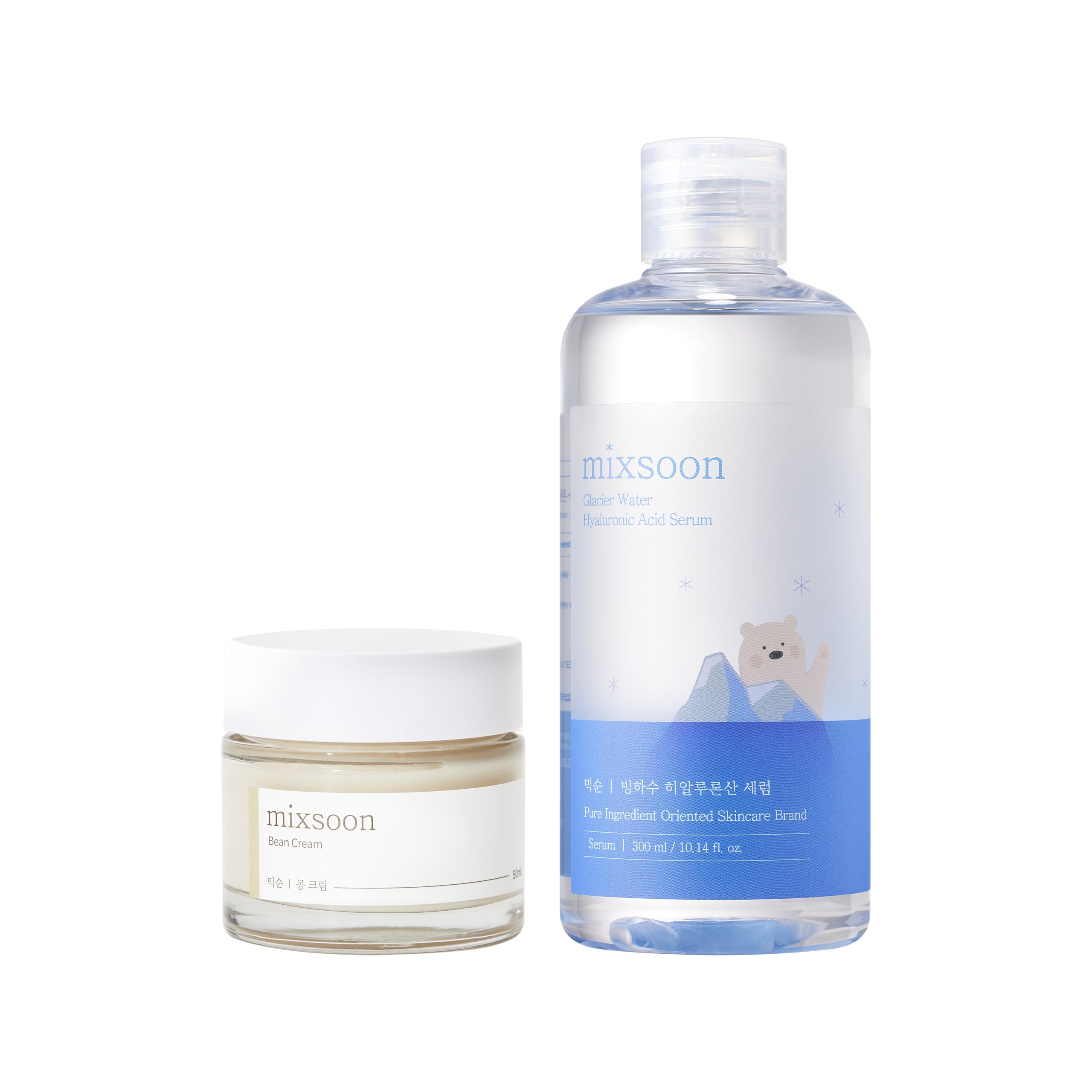 mixsoon Bean Cream 1.69 fl.oz / 50ml Glacier Water Hyaluronic Acid Serum 10.14 fl oz/ 300ml