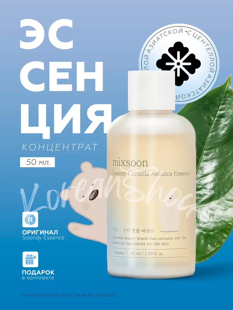 Продукты MIXSOON – это лаконичные, чистые и натуральные формулы, которые включают только необходимые ингредиенты для бережного ухода за кожей – и ничего лишнего. br Лёгкая эссенция с экстрактом центеллы азиатской успокаивает чувствительную или раздраженную кожу и укрепляет её естественный защитный барьер. Продукт, созданный на основе тщательно подобранных компонентов, помогает сделать кожу более гладкой и стимулирует синтез коллагена, чтобы повысить эластичность кожи.