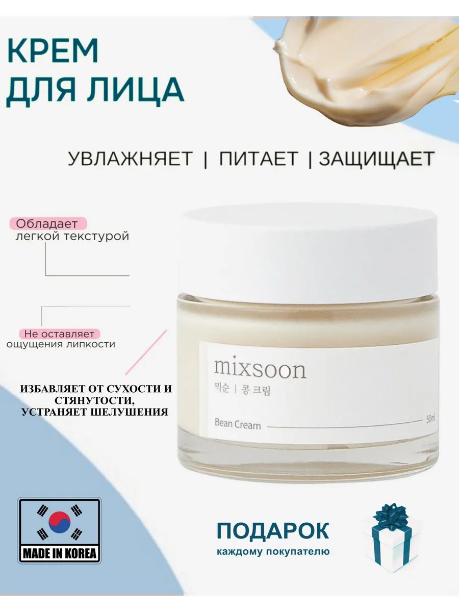 mixsoon Корейский крем для лица увлажняющий от сухости и стянутости