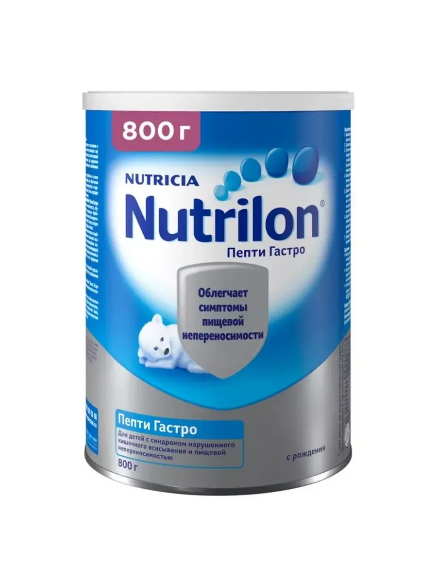 Сухая смесь на основе полностью гидролизованных белков молочной сыворотки со среднецепочечными триглицеридами и нуклеотидами «Nutrilon Пепти Гастро»Для диетического (лечебного) питания детей с рождения.Для детей с синдромом нарушенного кишечного всасывания и пищевой непереносимостьюОблегчает симптомы пищевой непереносимостиNutrilonПепти ГастроСиндром нарушенного кишечного всасывания и пищевая непереносимость могут возникать при пищевой аллергии, после операций на желудке и/или кишечнике, при нарушении всасывания жиров и воспалительных заболеваниях кишечника.Nutrilon Пепти Гастро — безлактозная смесь, разработана на основе международных рекомендаций, и подходит для длительного использования.Nutrilon Пепти Гастро облегчает симптомы пищевой непереносимости и нарушенного кишечного всасыванияБлагодаря особому составу NutrilonПепти Гастро:имеет низкую остаточную аллергенность , обусловленную наличием специально обработанного (высокогидролизованного) сывороточного белка, аминокислотный спектр которого близок к спектру грудного молока;удовлетворяет высокие энергетические потребности ребенка с мальабсорбцией с помощью высококалорийных среднецепочечных триглицеридовнормализует барьерную функцию кишечника и улучшает пищеварение за счет содержания нуклеотидов;хорошо переносится при лактазной недостаточности, т.к. не содержит лактозу.Высокая эффективность Nutrilon Пепти Гастро доказана международными клиническими исследованиями.Эффективность данной смеси обусловлена применением, наряду с другими компонентами,высокогидролизованного сыовороточного белка. Поэтому для вкуса смеси характерно присутствие горьковатой или терпкой ноты.Стул ребенка, получающего данную смесь, может приобрести зеленоватый цвет, что также обусловлено присутствием в смеси гидролизованного белка. Такие изменения характерны для всех смесей на основе гидролизата сывороточного белка.