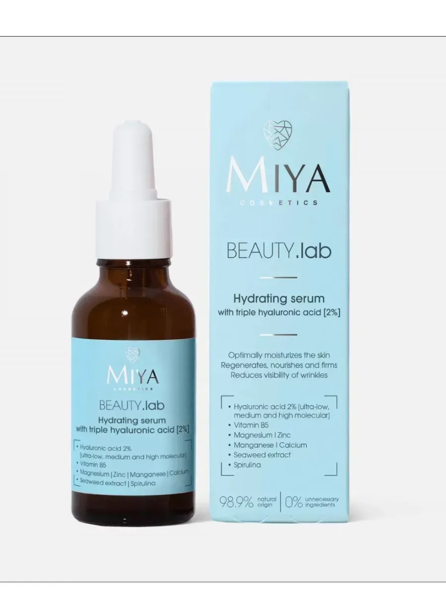 Moisturizing serum with triple hyaluronic acid [2%] from the Polish brand MIYA Cosmetics optimally hydrates the skin, regenerates, nourishes, and strengthens.