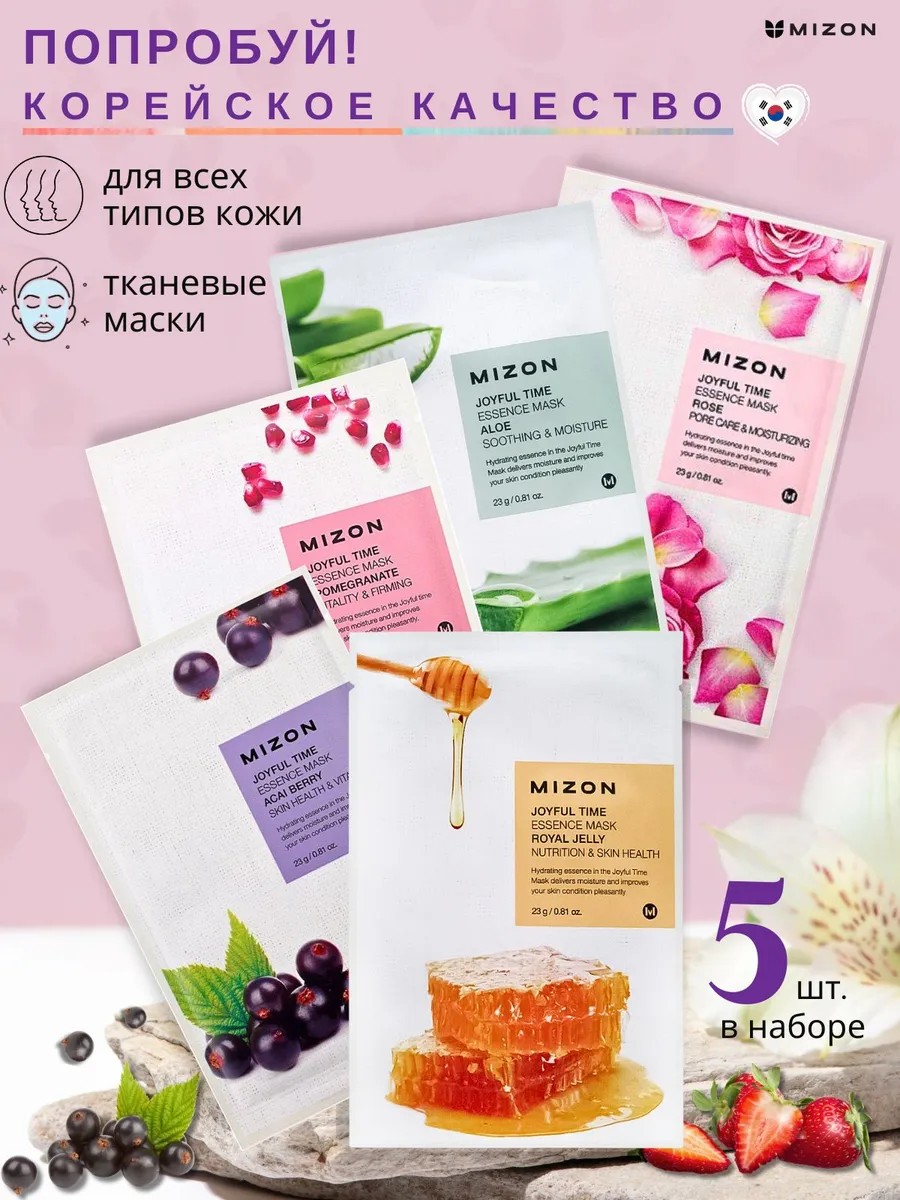 MIZON ESSENCE MASK premium cosmetic face masks. Designed to care for your beauty. The set consists of 5 pieces. Made from high-quality ingredients. Moisturizing and nourishing. Restores the skin. Suitable for all skin types: sensitive and dry skin, oily and problematic. Have a soothing and healing effect. Provide a rejuvenating and lifting effect. A comprehensive skincare line for women. MIZON is a professional Korean brand that uses only beneficial ingredients of plant origin. Hypoallergenic. Helps in the fight against imperfections and inflammation. Helps against pigmentation and age spots. Copes with such imperfections as oily shine and blackheads. Suitable for teenagers. For age spots on the face. A complete skincare complex for women. An excellent anti-aging product. Korean skincare products, unlike Chinese ones, are more functional. An affordable premium box of beauty masks for a woman, mother, or friend as a gift for March 8th or a birthday. Purchase professional and hypoallergenic sets of masks for an adult sister or aunt, colleague, or teacher. They have protective properties against deep wrinkles and imperfections such as post-acne. A pleasant gift for Valentine's Day, February 14th, and March 8th. Happy shopping!