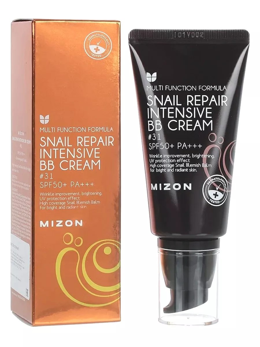 Mizon BB Cream with Snail Mucin, Shade 31, 50 ml, 1 pc. This moisturizing BB cream with snail mucin creates an even, natural coverage, correcting skin tone and concealing skin imperfections such as redness, pigmentation, fine lines, and inflammation. SPF 50+++ PA
