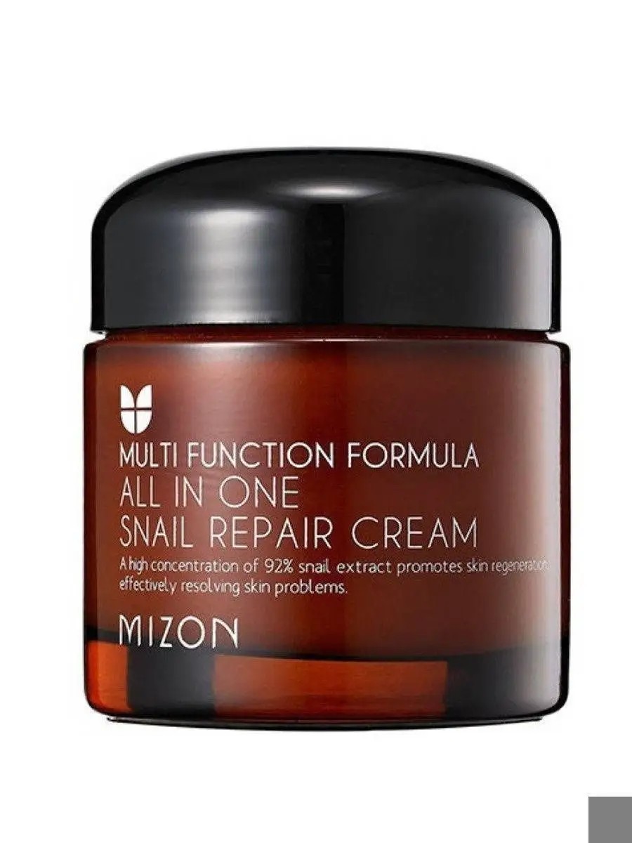 Mizon All in One Snail Repair Cream 75 мл — это многофункциональный уходовый крем с муцином улитки, разработанный для восстановления и укрепления кожи. Легкая текстура средства обеспечивает быстрое впитывание, не оставляя липкости или жирного блеска. Подходит для всех типов кожи, включая чувствительную.