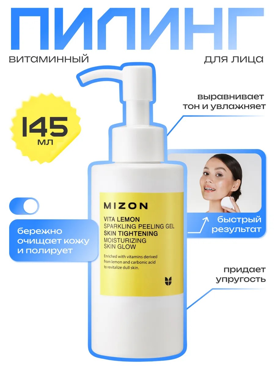 Витаминный пилинг-скатка MIZON Vita Lemon Sparkling Peeling Gel с легкой гелевой текстурой очищает кожу, удаляет ороговевшие клетки, улучшает клеточное дыхание. Делает кожу более ровной, свежей и упругой, ухоженной и отдохнувшей. Подходит даже для чувствительной кожи.