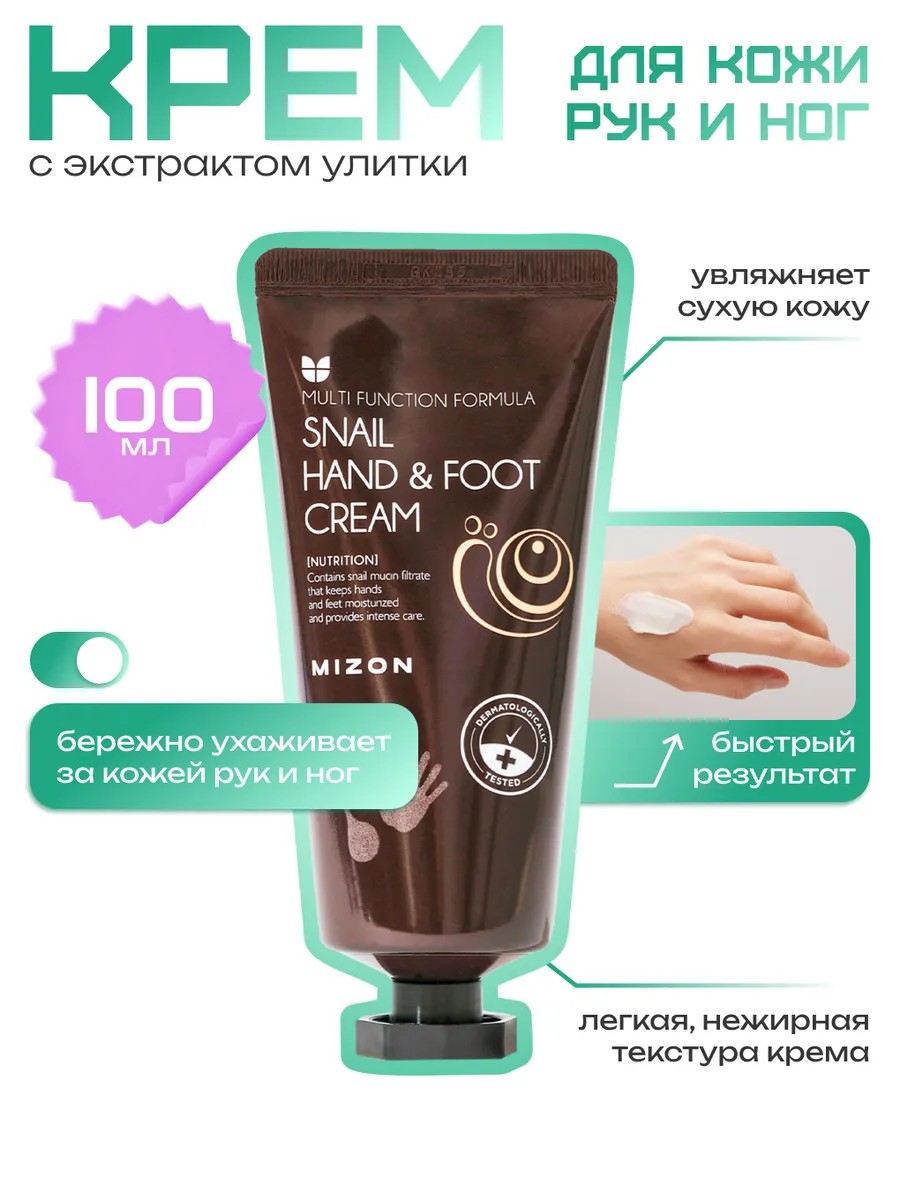 Крем для рук и ног с экстрактом улитки, обладая плотной текстурой, надолго питает и увлажняет кожу. Входящий в состав крема фильтрат улиточной слизи смягчает грубую и потрескавшуюся кожу рук и ног. Комплекс растительных ингредиентов, включающий экстракты центеллы азиатской, солодки, рейнутрии японской, корня шлемника, розмарина и зеленого чая, надолго сохраняет кожу увлажненной. Надежная формула крема, прошедшая клинические испытания, не вызывает раздражения. Способ применения: нанести на чистую кожу рук или ног.