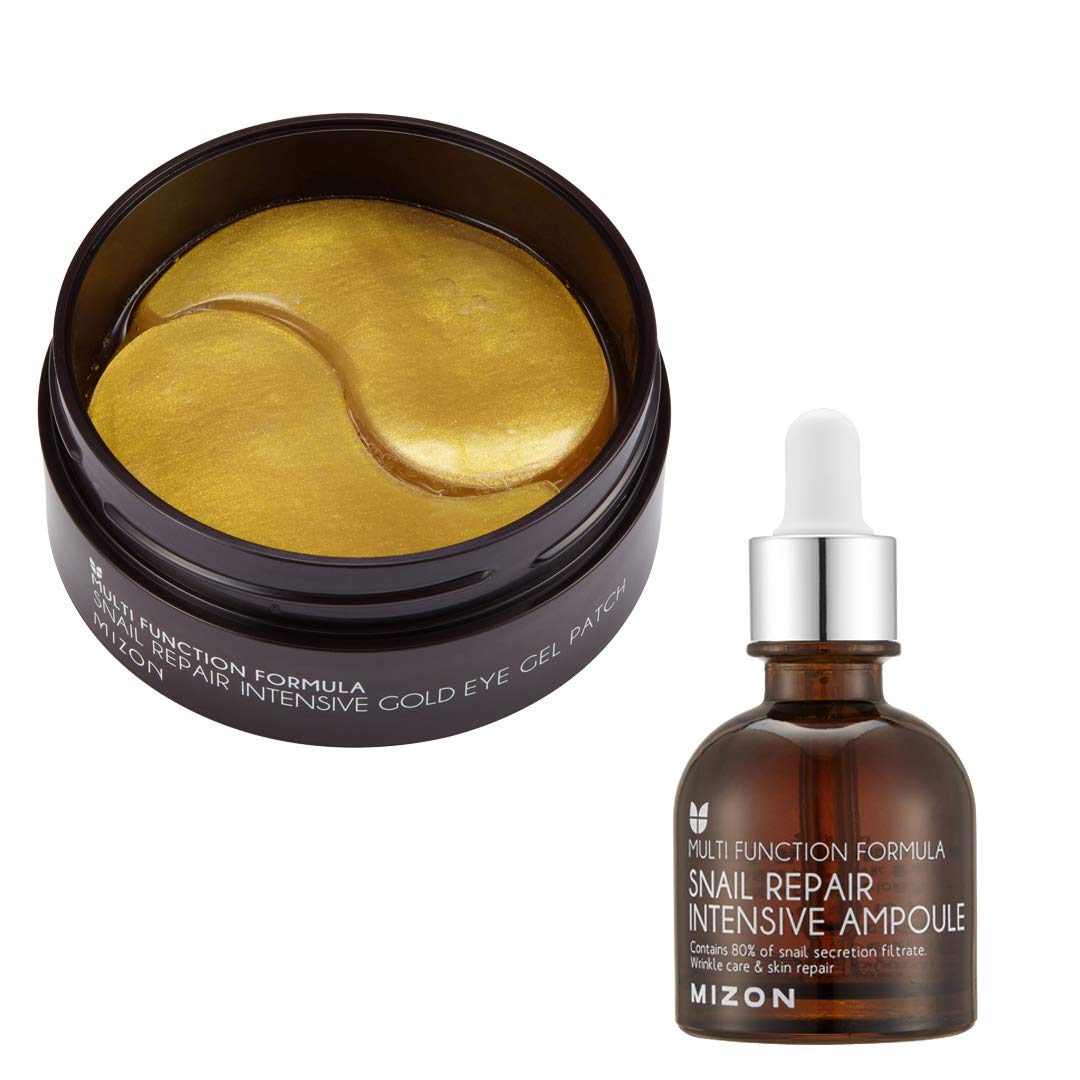 MIZON Snail Gold Eye Gel Patches + Snail Repair Intensive Ampoule, Moisturizing, anti-aging, skin regeneration, Reduces Puffiness, Dark Circles treatment
