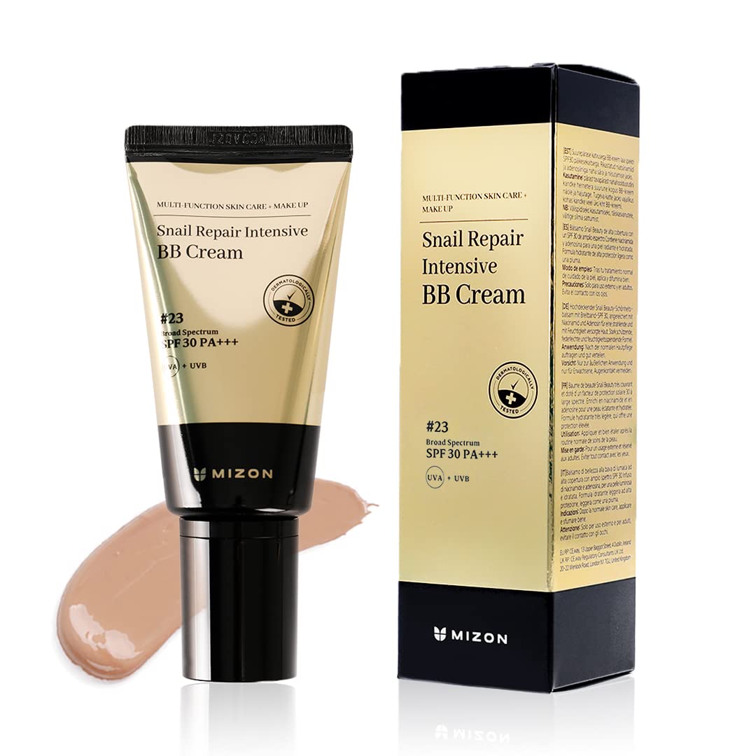 MIZON SNAIL REPAIR INTENSIVE BB CREAM (#23 Sandy Beige) K Beauty - BB Cream with Snail Slime Extract - Anti-Aging Facial Treatment - High Coverage - Brightens & Hydrates