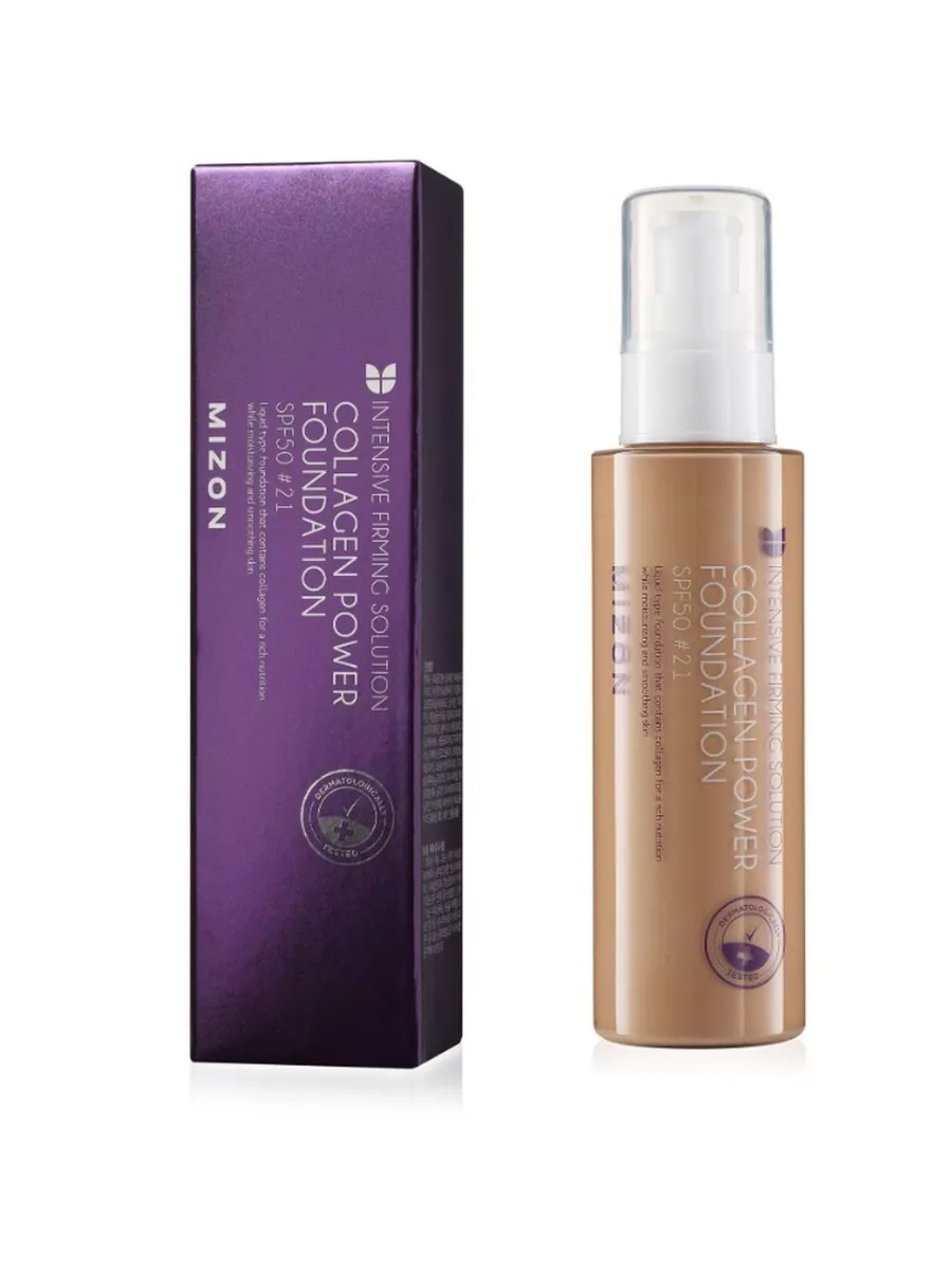Mizon Collagen Power Foundation #21 is a foundation with a high concentration of collagen (1000 ppm) to improve skin firmness and elasticity.