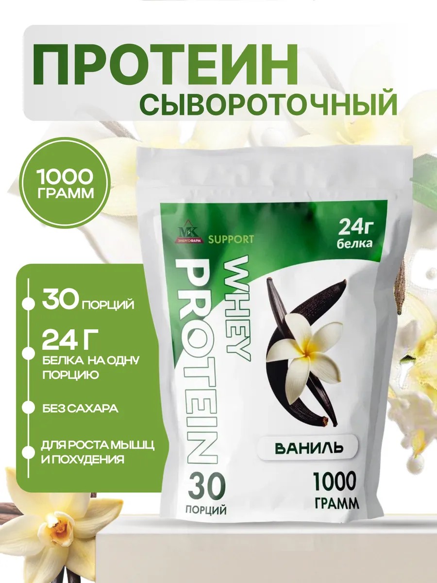 | Полное наименование товара | Сывороточный протеин MK SUPPORT Ваниль без сахара / 1000 г 30 порций |