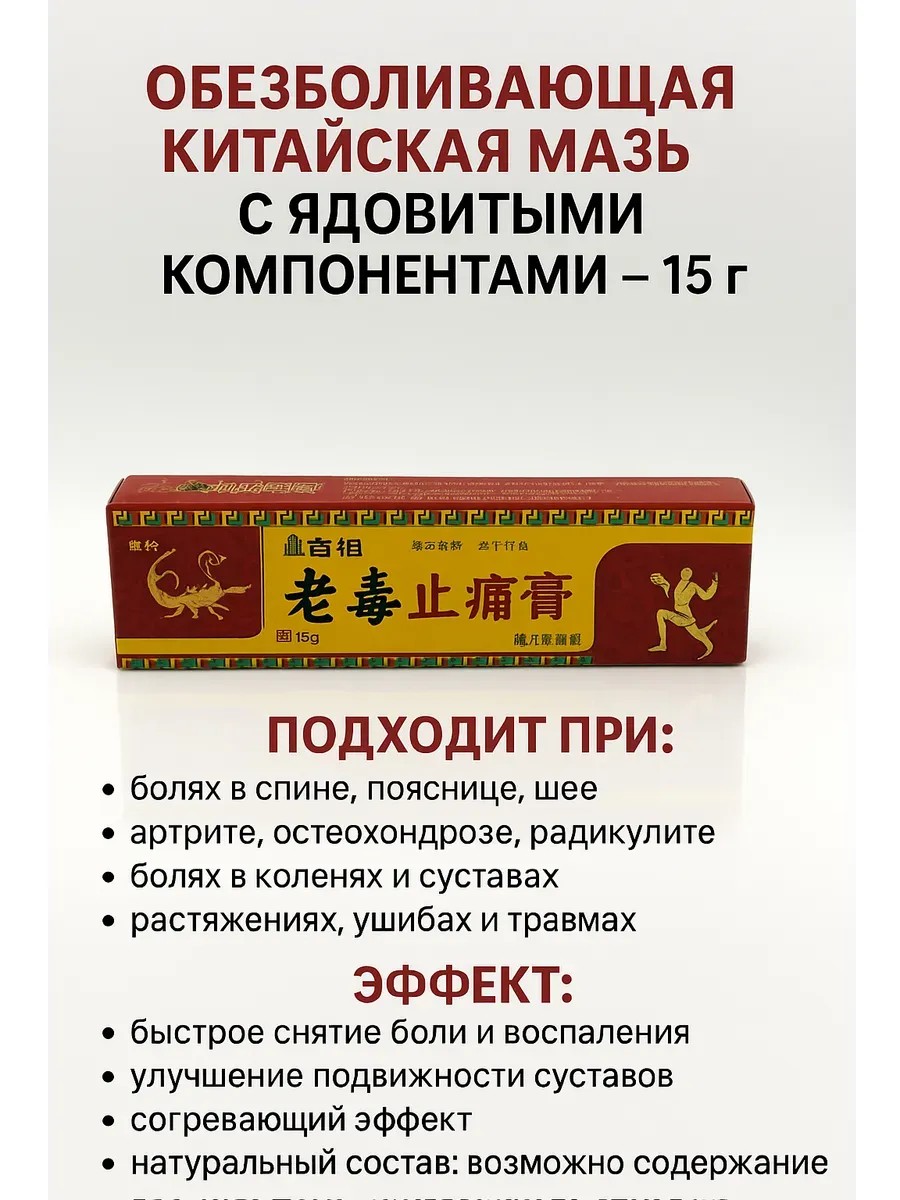 Обезболивающая китайская мазь с ядовитыми компонентами — 15 г