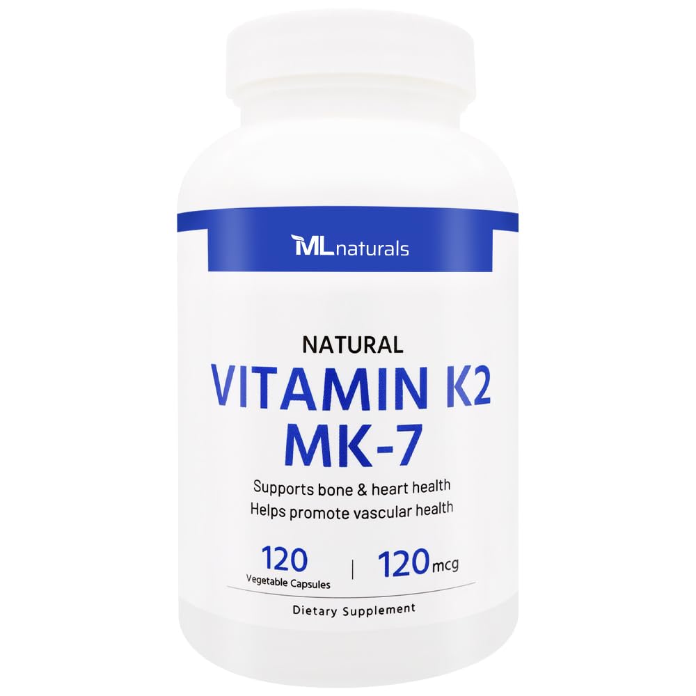 ML Naturals Natural Vitamin K2 MK-7 120 mcg 120 Vegetable Capsules. Natural MK-7/99% All-Trans MK-7. Supports Bone & Heart Health Promote Vascular Health Third-Party Lab Tested 120 Count (Pack of 1)