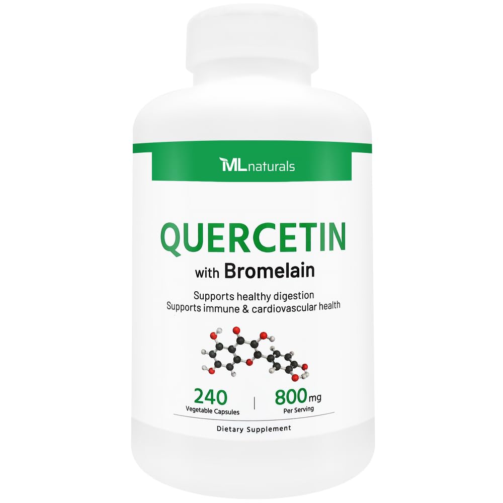 ML Naturals Quercetin 800mg with Bromelain 200 mg, 240 Vegetable Capsules. Supports Cardiovascular and Immune Health, Third-Party Lab Tested 240 Count (Pack of 1)