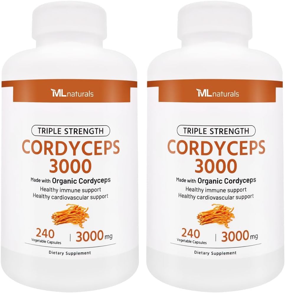 ML Naturals Triple Strength Cordyceps 3000 Made with Organic Cordyceps 240 Vegetable Capsules. Healthy Immune Support & Cardiovascular Support. Non-GMO NSF-Certified & cGMP-Compliant (Pack of 2)