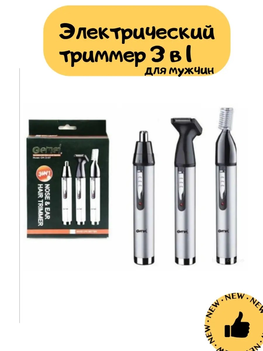 Триммер 3 в 1. Универсальный триммер предназначен для бережного удаления лишних волосков в носу и ушах, а также для бороды. Удобная головка обеспечивает быстрое, простое и комфортное подравнивание без неприятных ощущений. Использование такой машинки безопасно, ведь благодаря современным технологиям режущий элемент защищен специальной ультратонкой сеткой с закругленными кончиками, которые предотвращают раздражение кожи. Оптимальный угол наклона триммера позволяет легко подравнивать волоски в ушах и носу. Лезвия выполнены из прочной нержавеющей стали и прослужат вам долгое время. Триммер работает от встроенного аккумулятора и заряжается от сети. В составе набора 3 насадки - для окантовки, для бровей, для удаления волос в ушах и носу. Набор для удаления лишних волос / триммер для носа и ушей / триммер для волос в носу и ушах / машинка для стрижки в носу и ушах / триммер для ушей и носа мужской / триммер для бороды носа и ушей / безопасный универсальный триммер для удаления волос на лице.