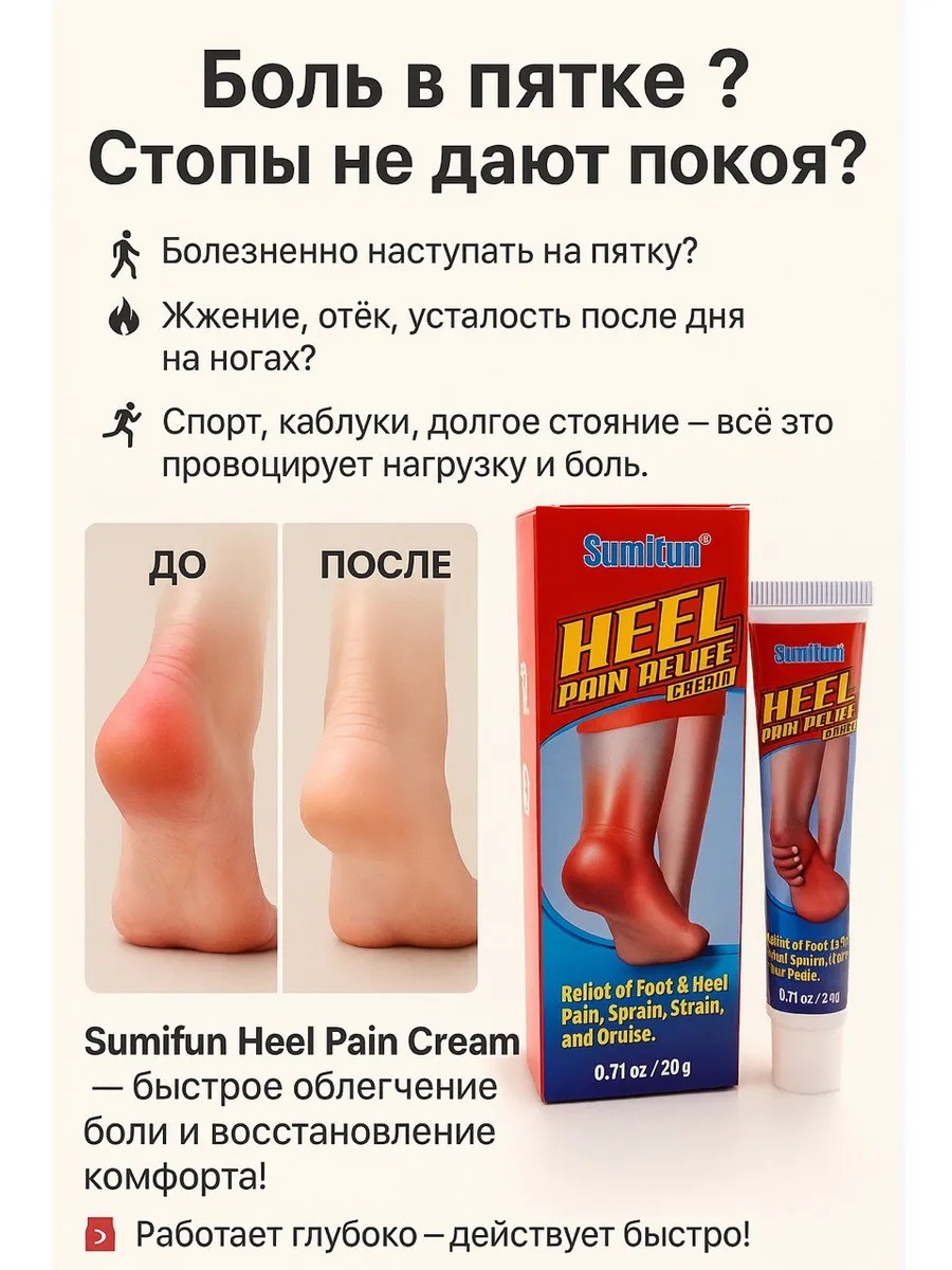 The ointment is specially designed to relieve pain in the heel area, including heel spurs.