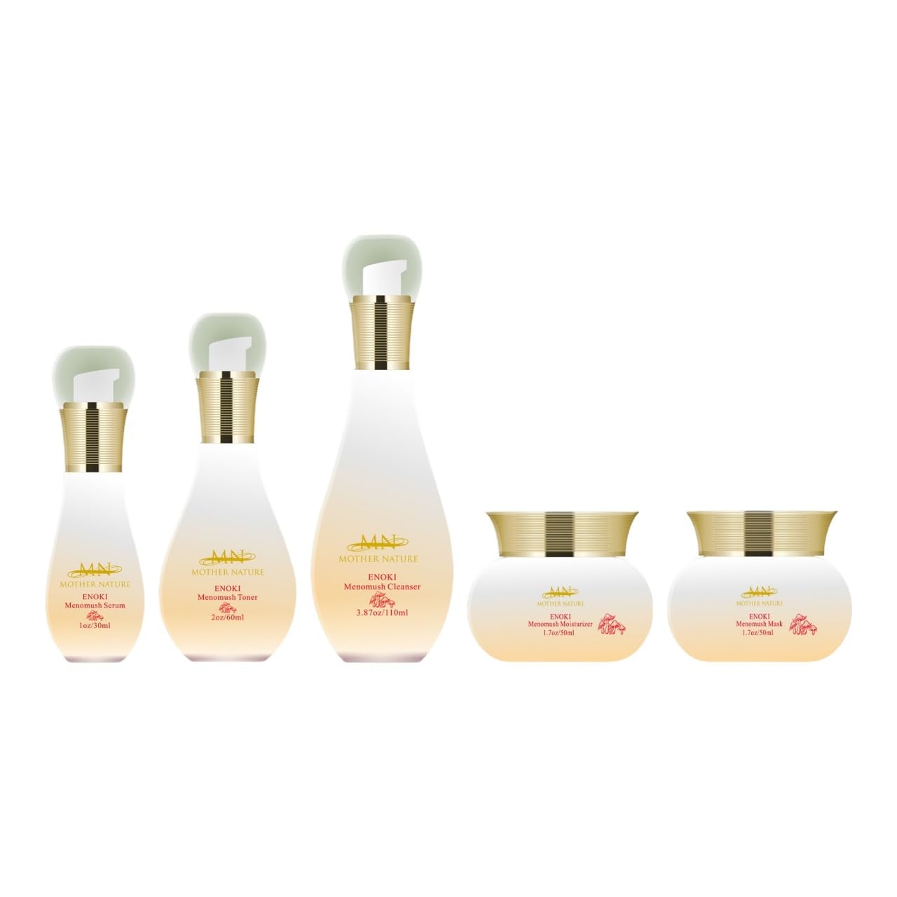 MN Mother Nature Enoki Menomush 5-Piece Skincare Set Cleanser Toner Serum Mask & Moisturizer Mushroom Antioxidant Complex for Glowing Radiant Skin Anti-Aging & Hydrating Daily Routine