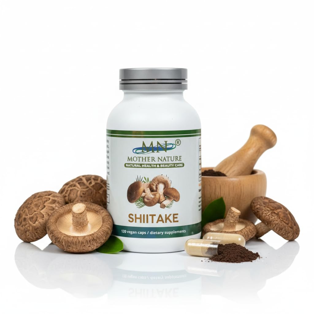 MN Mother Nature Shiitake (Lentinula edodes) Mushroom Supplement - 1000mg - 120 Vegan Pullulan Capsules - Made in USA - 60 Day Supply