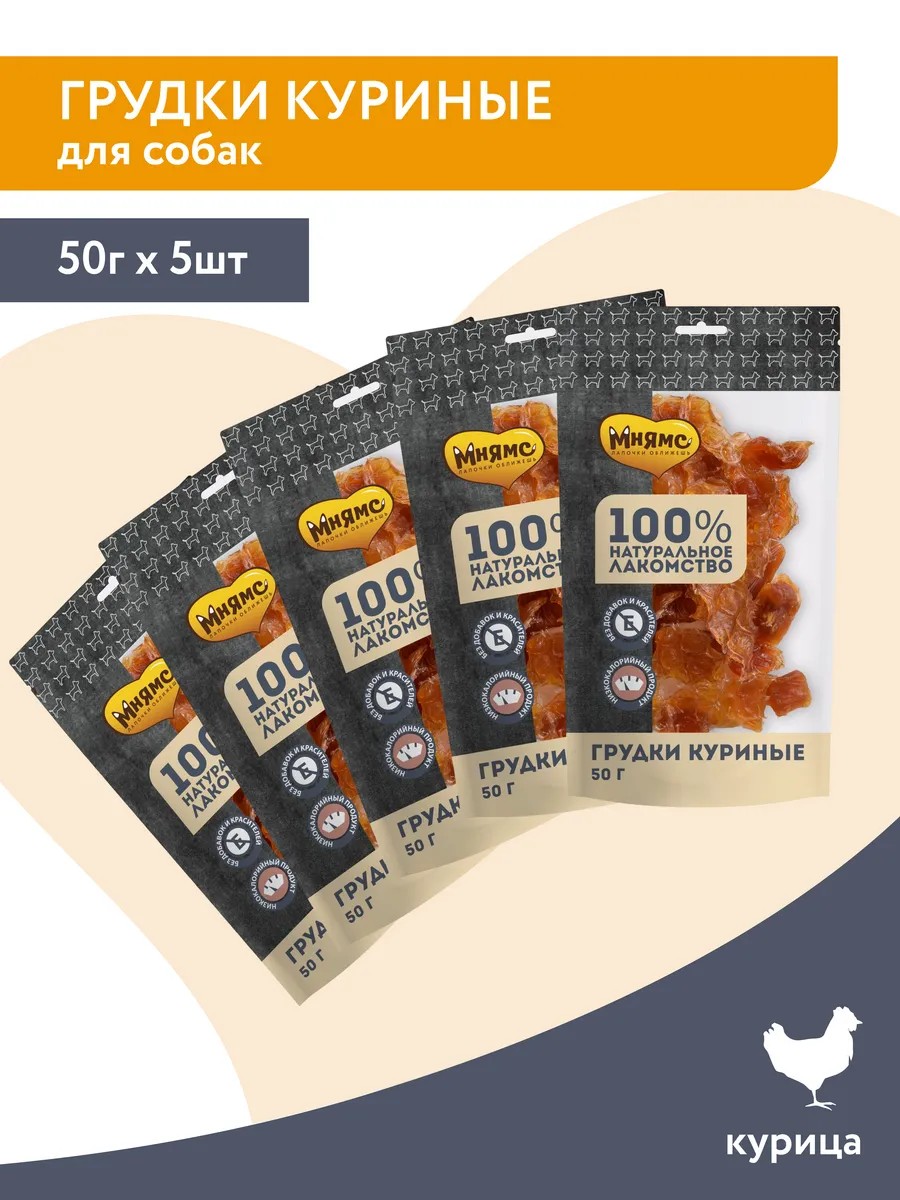 Куриные грудки считаются диетическим лакомством, при этом они богаты витаминами группы B. Высокое содержание микроэлементов, таких как магний, фосфор и калий способствует повышению иммунитета, укреплению сердечно-сосудистой системы, восстановлению обменных и метаболических процессов. В комплекте 5 упаковок по 50г