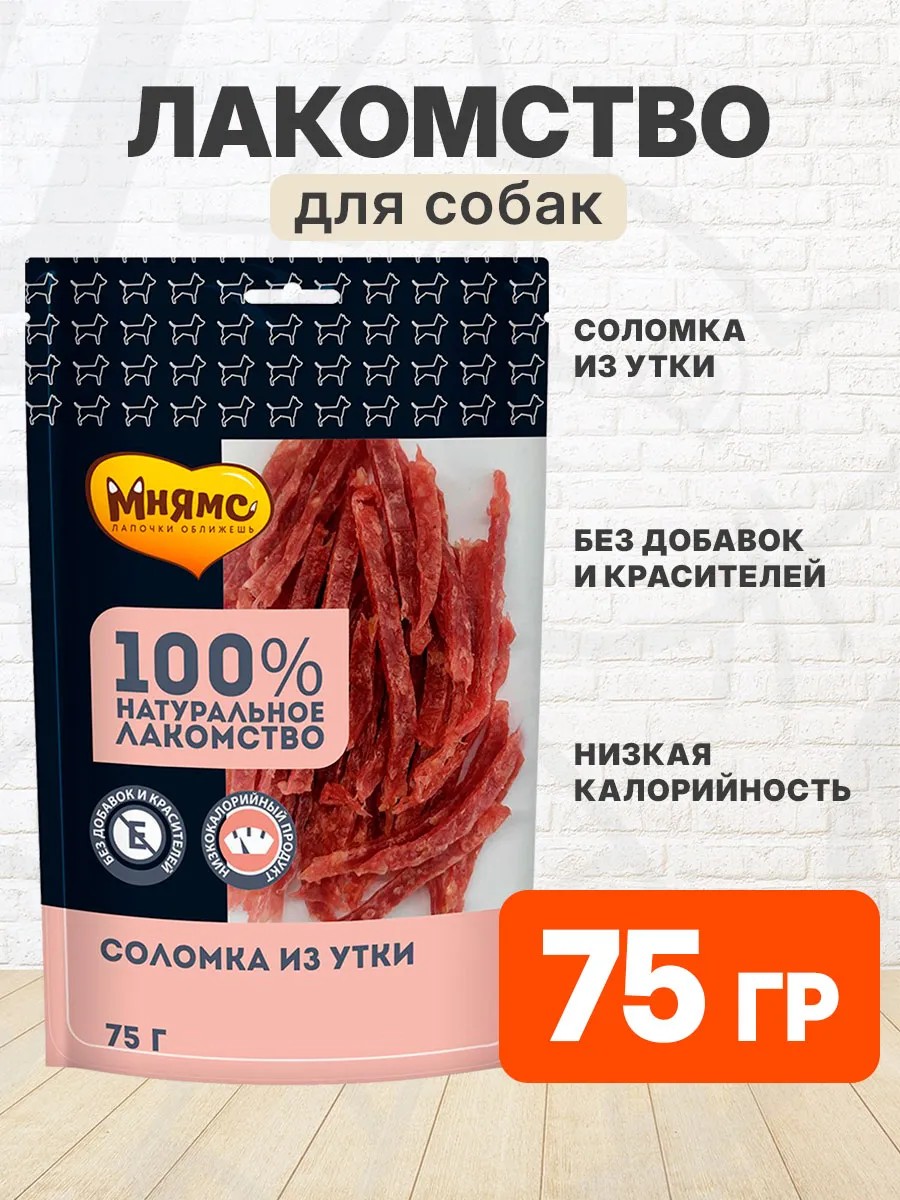Мнямс соломка из утки - вкусное и полезное лакомство для собак мелких и щенков старше 3-х месяцев.